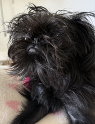 Violet Moon is a tiny petite one year old Brussels Griffon. She’s as sweet as she is cute. Her expressive eyes steal your heart.