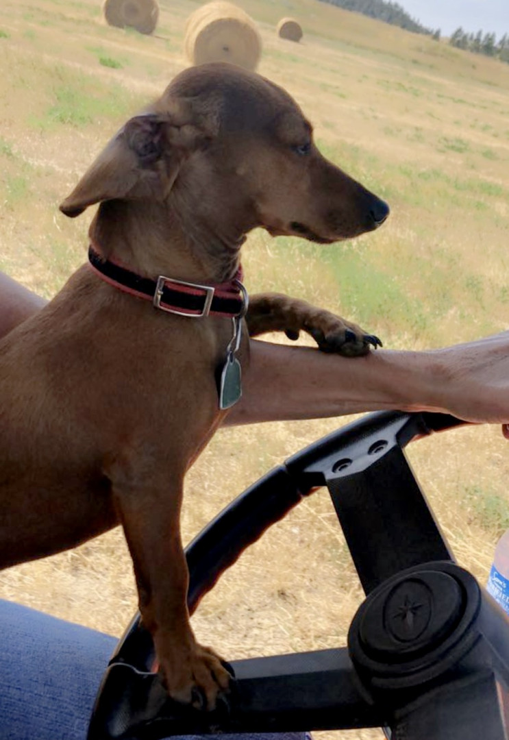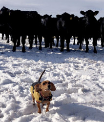 Wally’s most unique quality is that he helps move cows fairly well for a dachshund!! He’s a cow dog in a little sausage body who has no fear but we make sure he listens to our commands so he doesn’t get kicked or ran over.