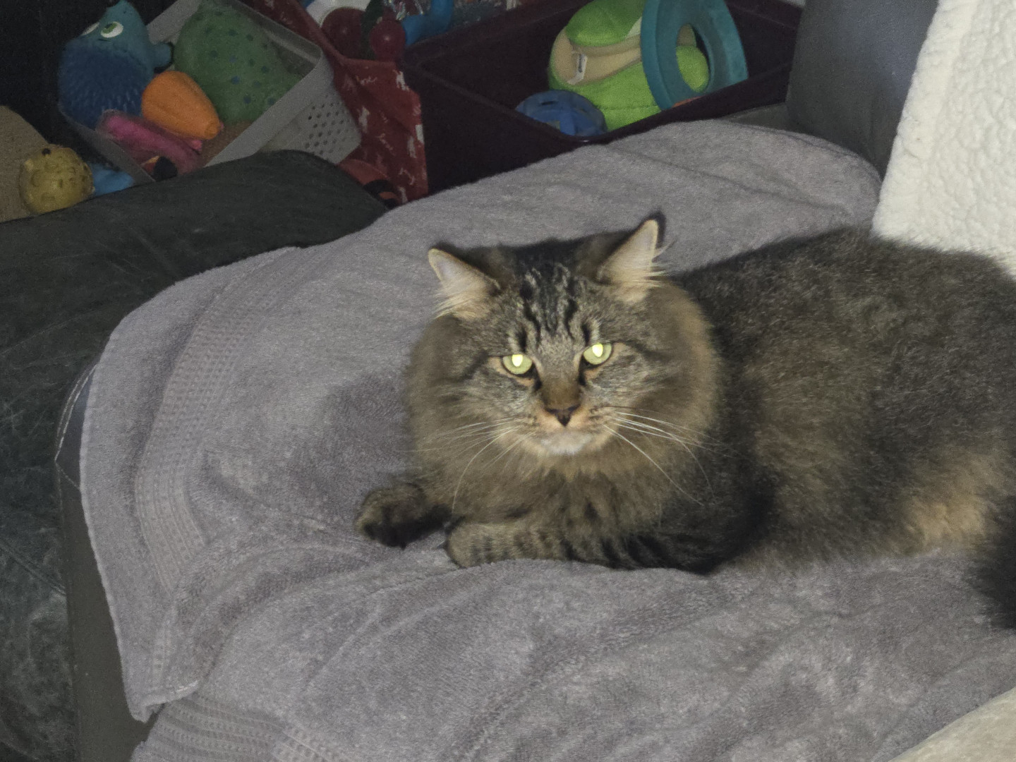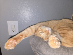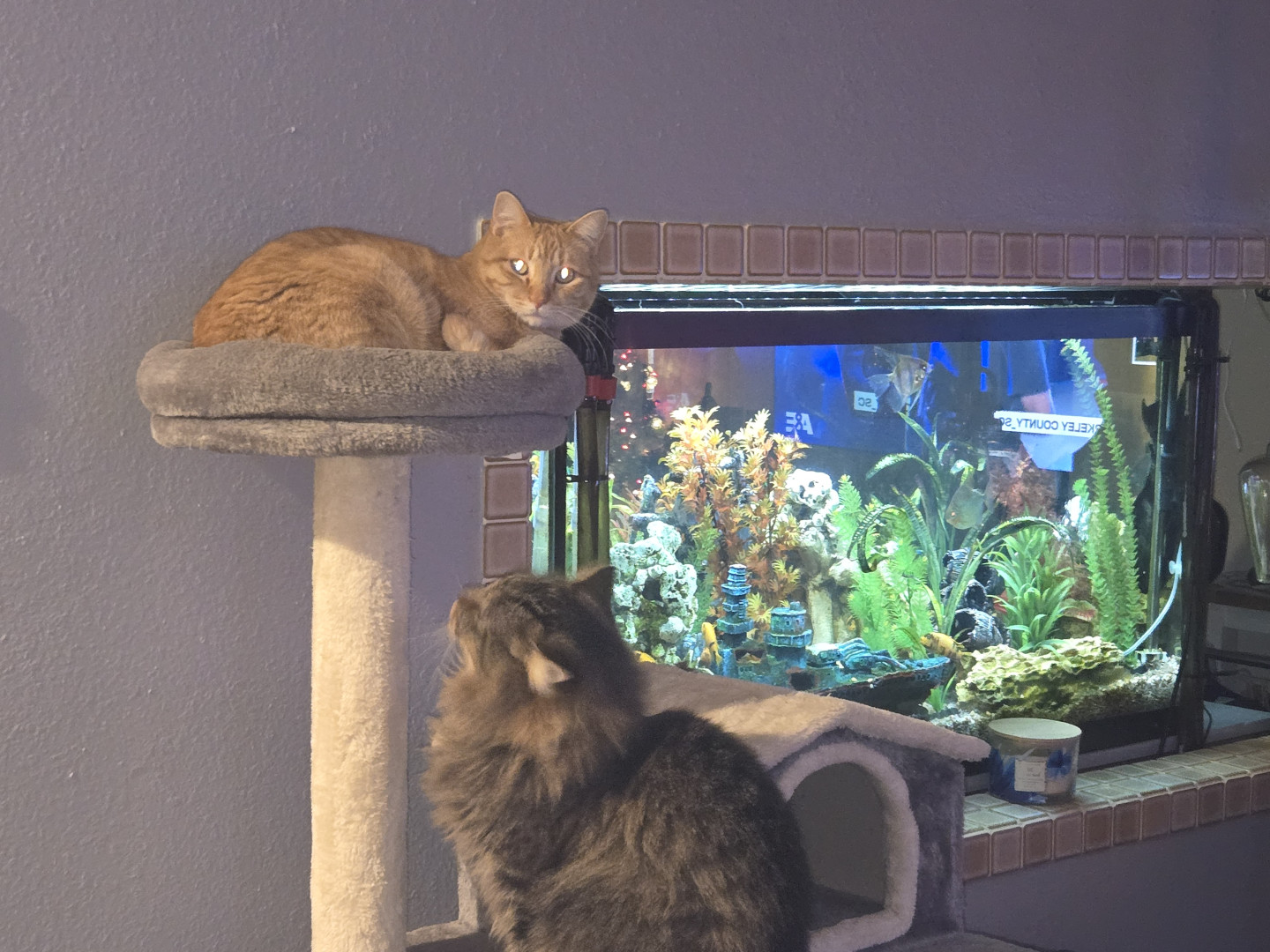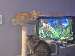 Their cat house and fishing pole toy.