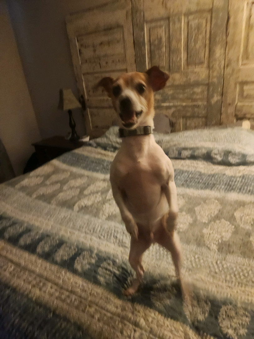 Waylon’s is 6. Jack Russell, who loves to play. Loves to sleep in, take walks & the occasional snuggle. His tail rarely stops wagging.