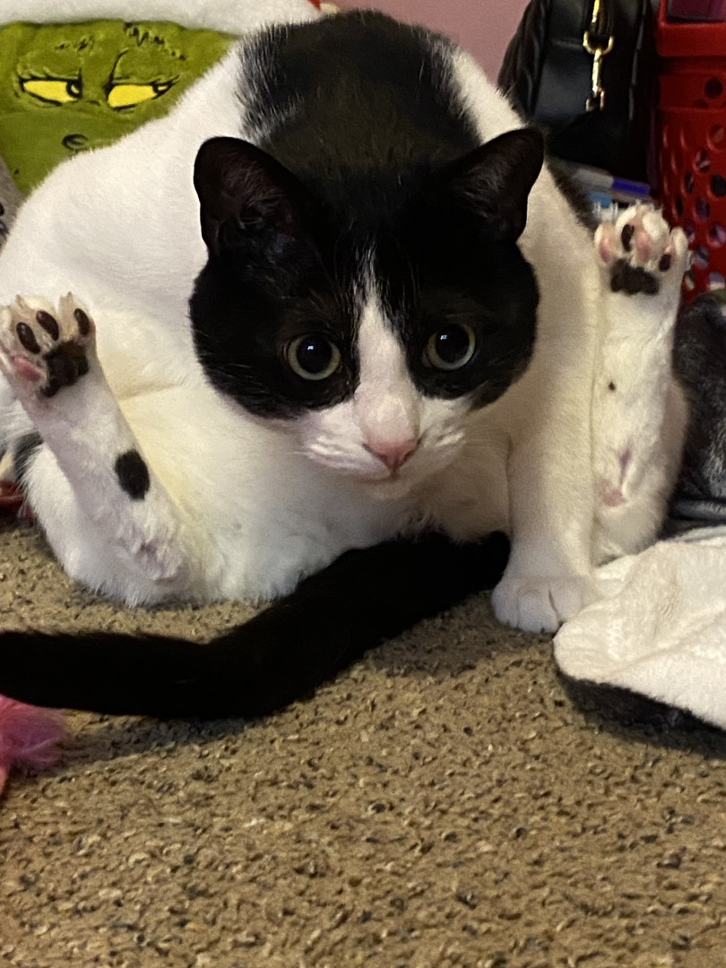 Wesley is a little chunk who loves to eat treats, watch what’s happening outside ,cuddle up in blankets ,and chew up hair ties and chargers!