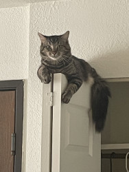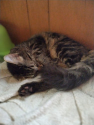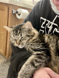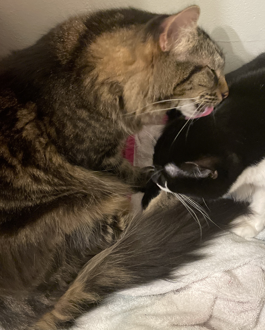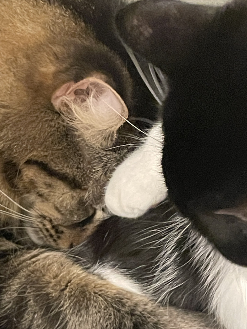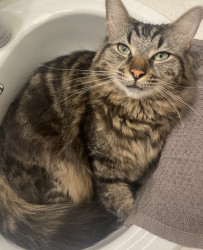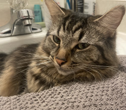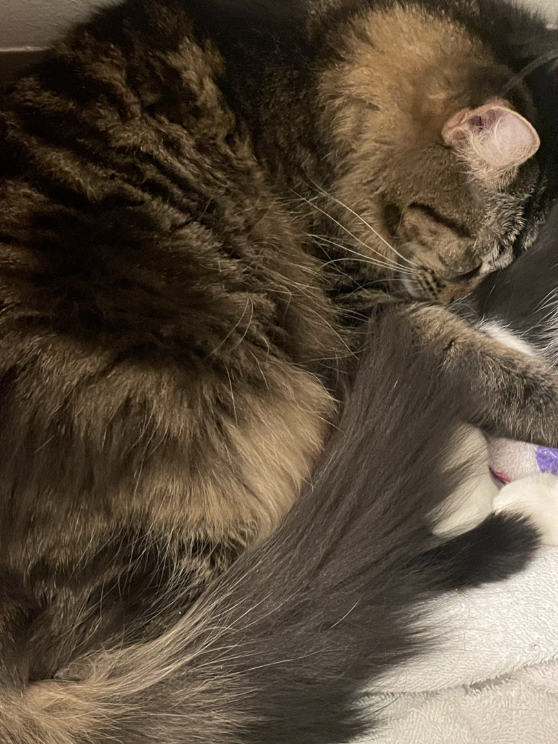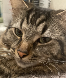 He’s beautiful n affectionate, an alpha of 3 that pulls his own weight in our fab lil fur fam. He works hard n does a great job We❤️him
