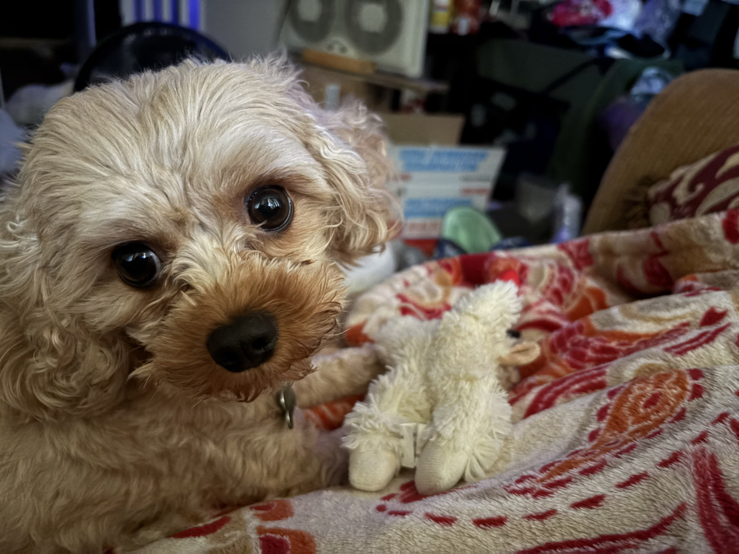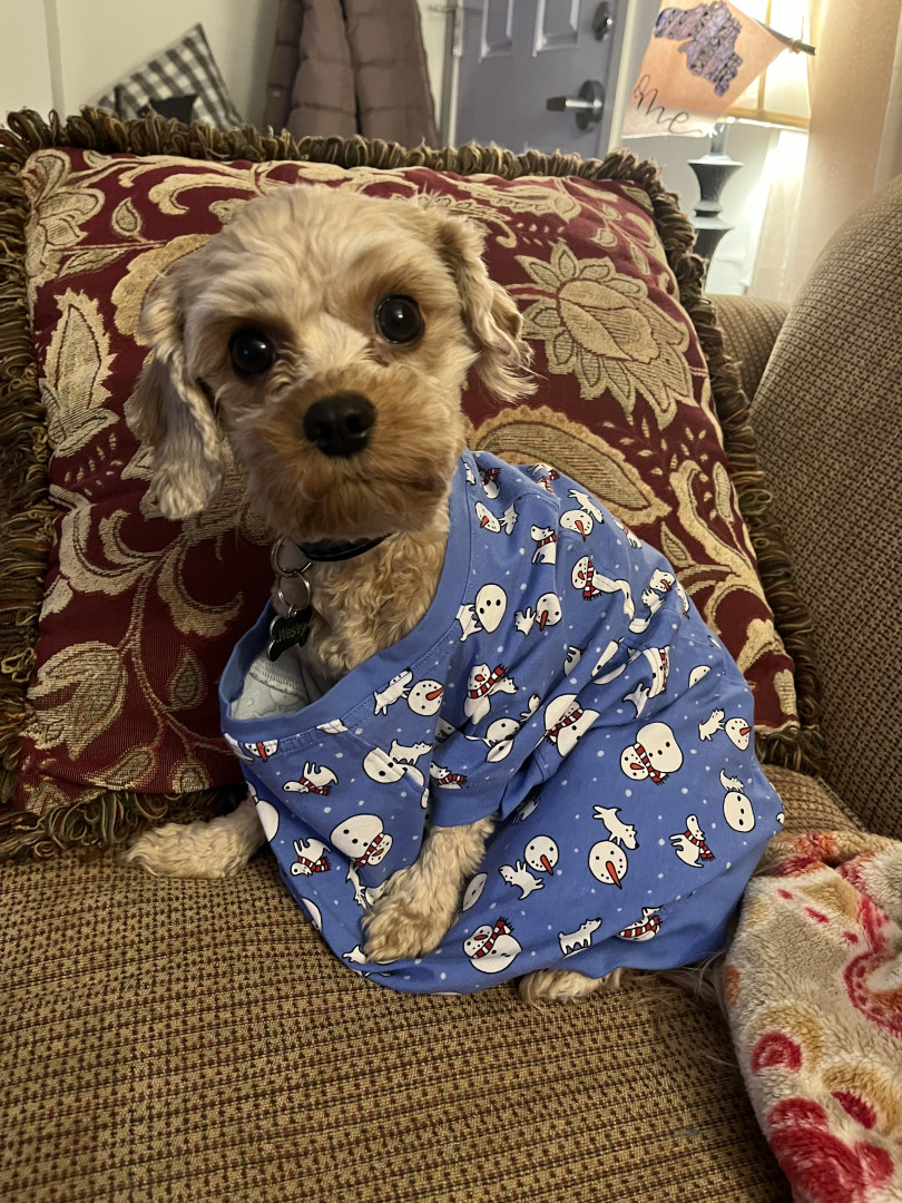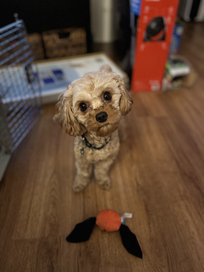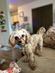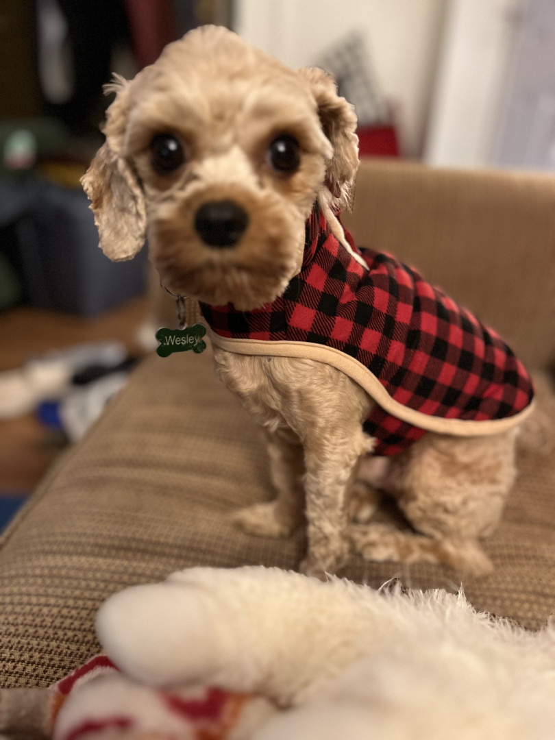 Wesley is a 3 year old Cavapoo. A Cavapoo is a mix between a Cavachon and a Poodle. He outshines his 6lb size everyday.