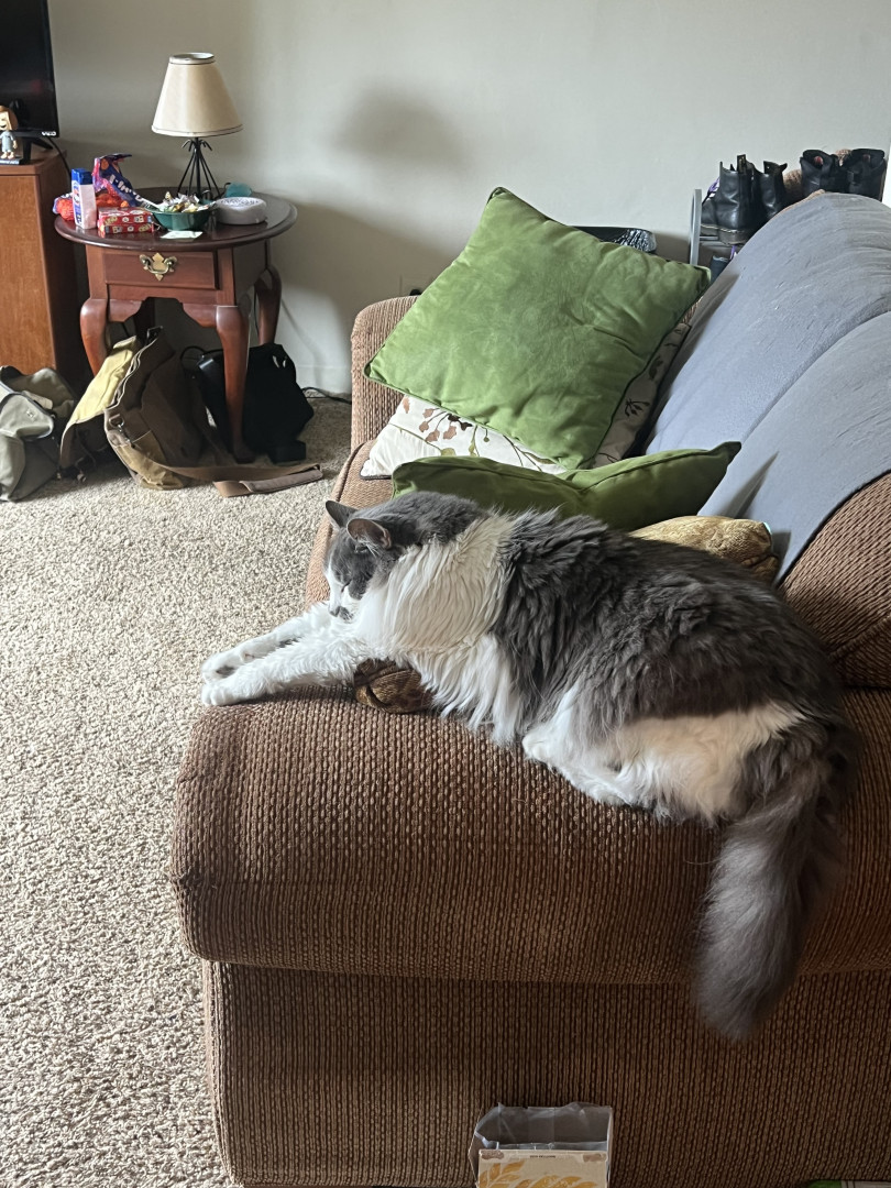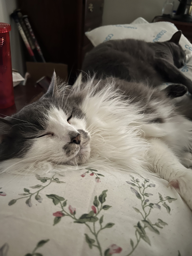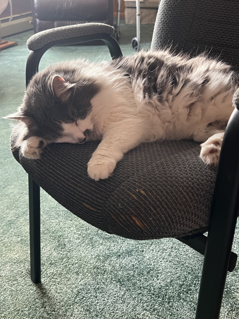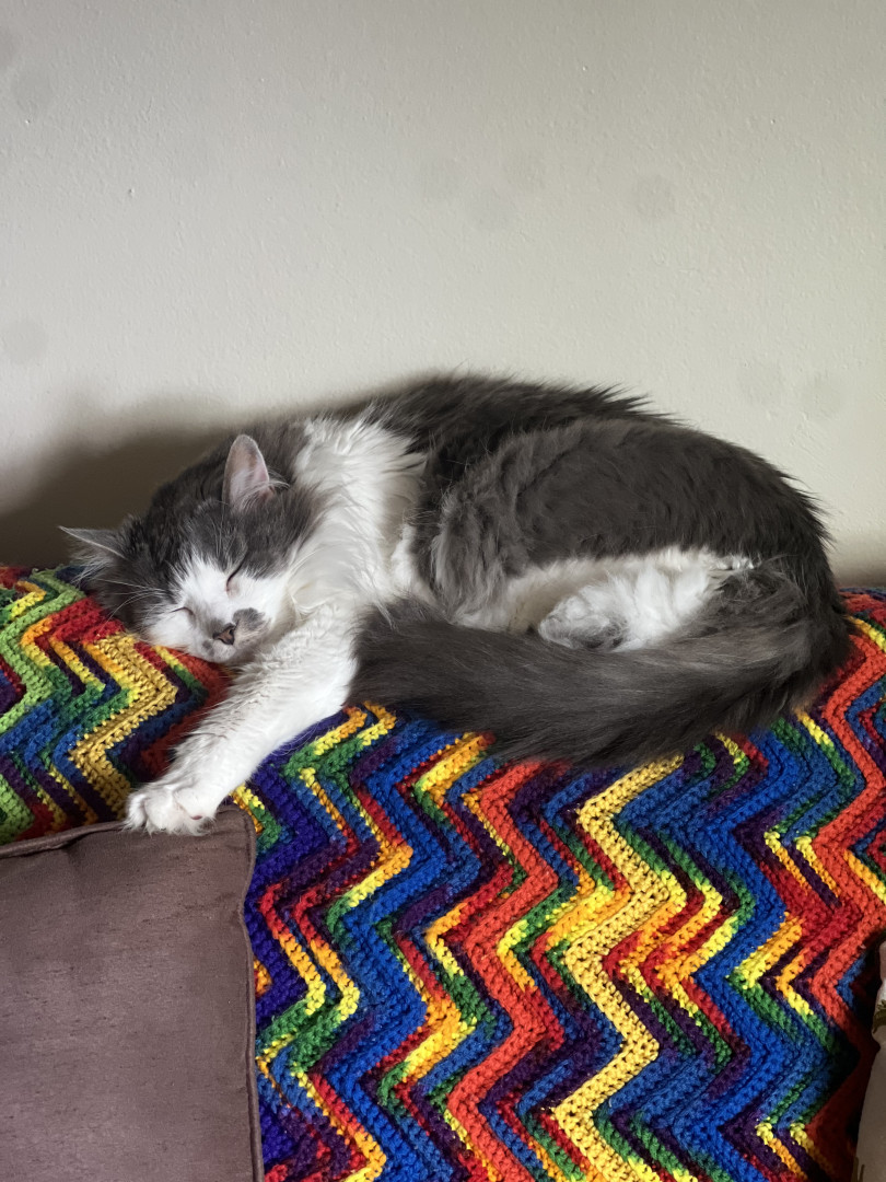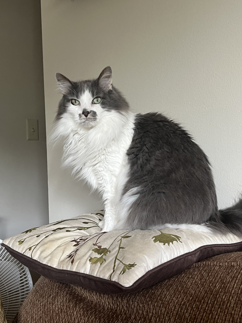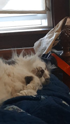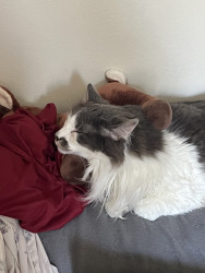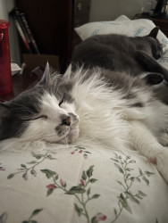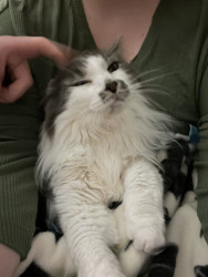Whatsie is the handsomest fluffy boy. He loves people and getting petted. He has a very loud purr that we call his motor.