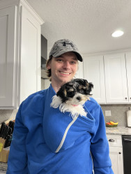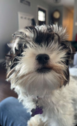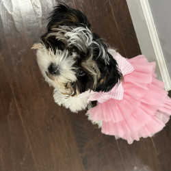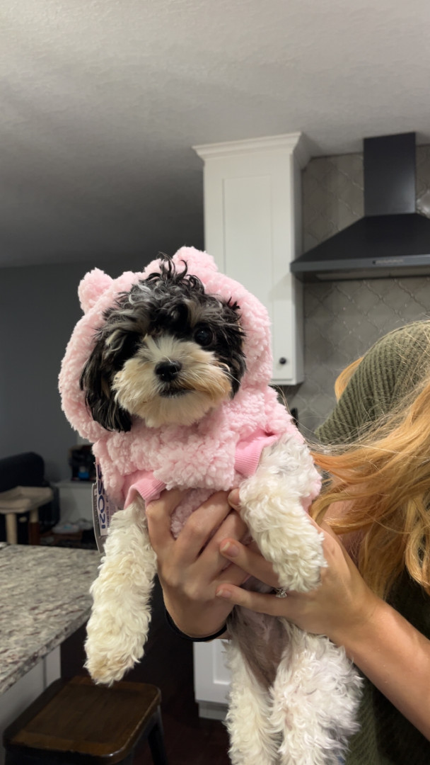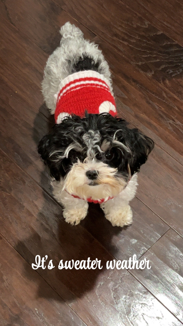 Whinnie is the tiniest pup with the cutest puppy doll face. She loves everyone and everything. Her personality is so much bigger than she is. She loves to dress to impress, her favorite clothing piece is her fleece pajamas. She stays warm by burrowing herself underneath the bed comforter or blankets.