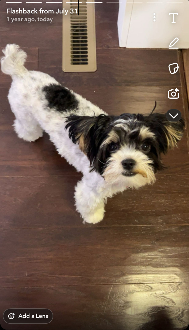 Whinnie is a 4 1/2 pound Yorkiepoo with a bigger than life personality. She’s a love bug and has no idea what personal space is.