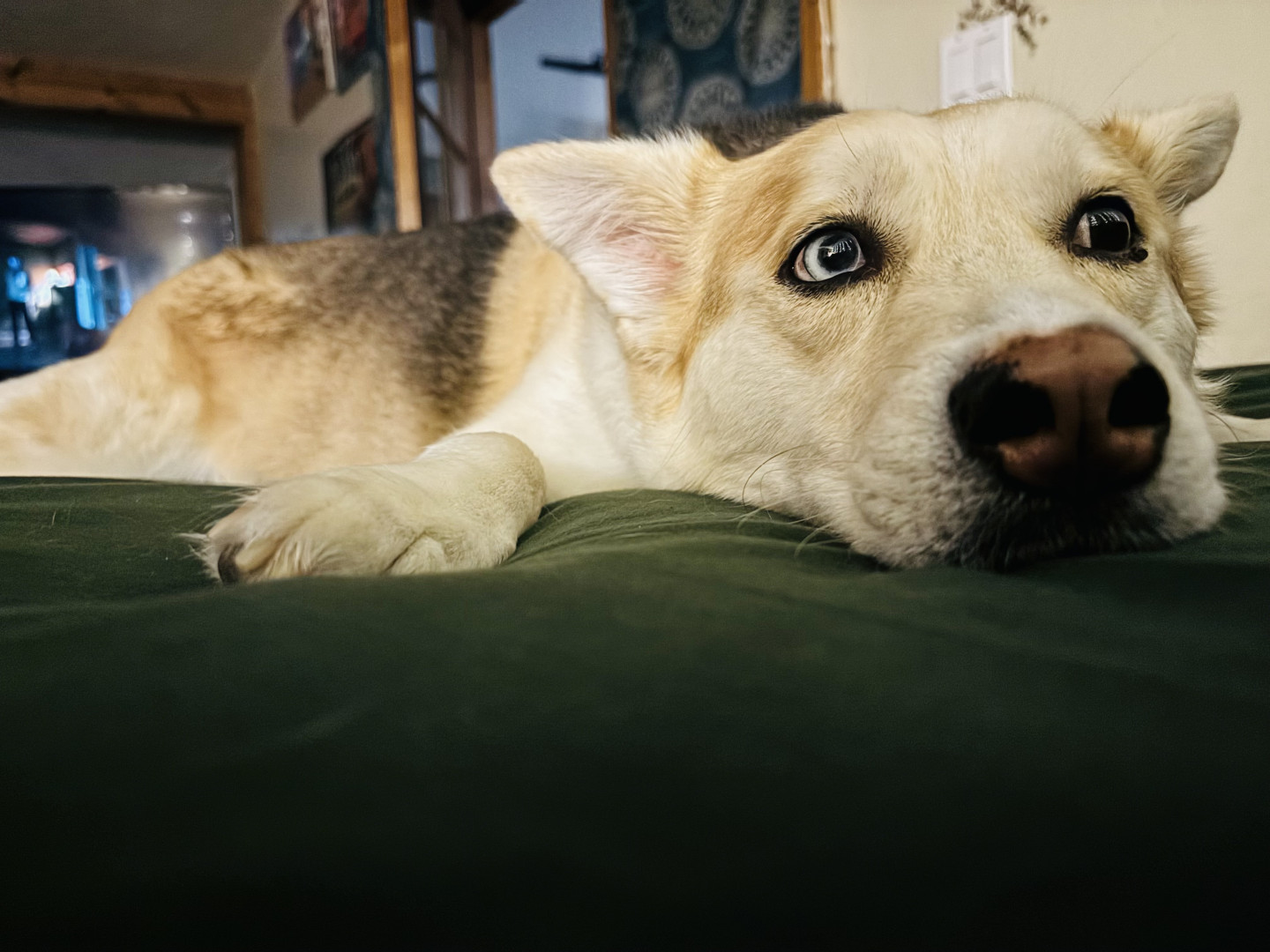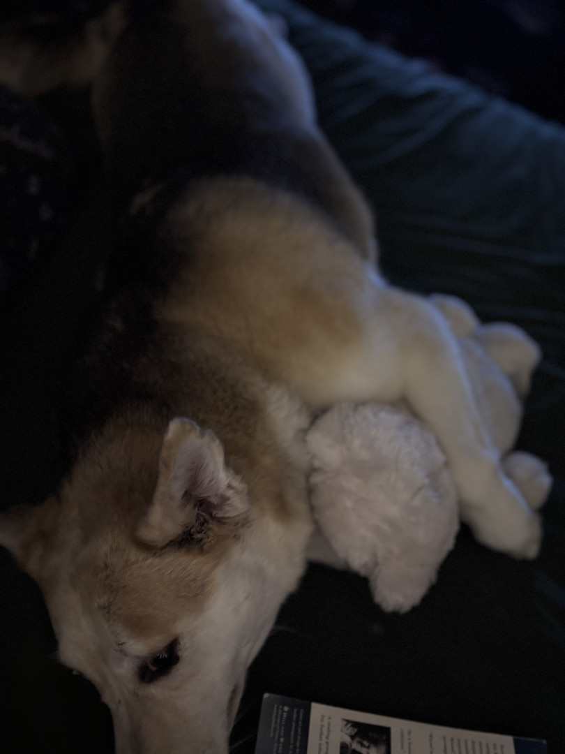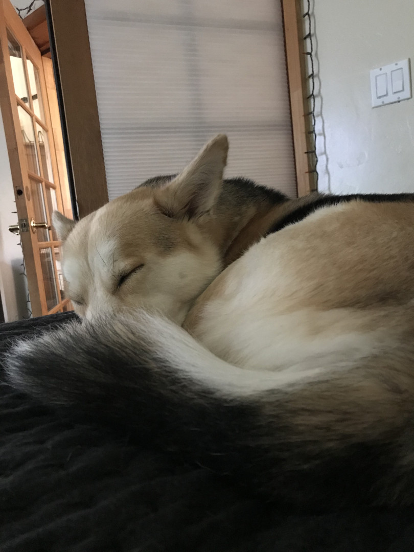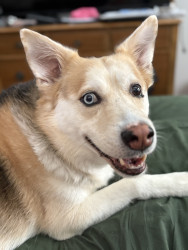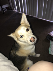 Whis is a saddleback agouti Siberian husky. He is a rescue from our local shelter, 7 years old, and a sucker for cuddles from everyone!