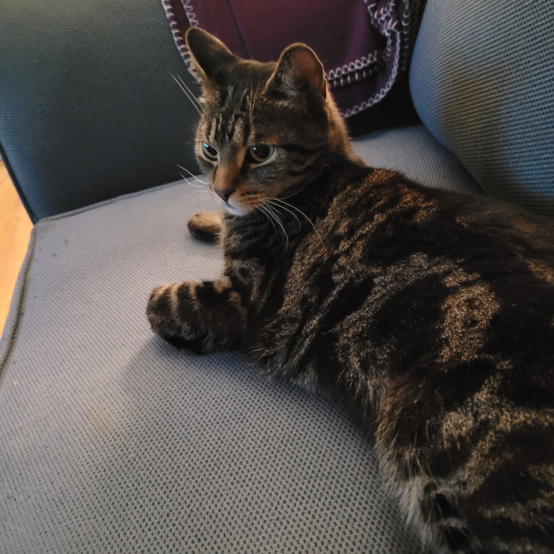 Well, Whiskers is a Male, 5 year old part Tabby and Bengal breed cat . Curious & loving , cuddling & independent. My great companion!