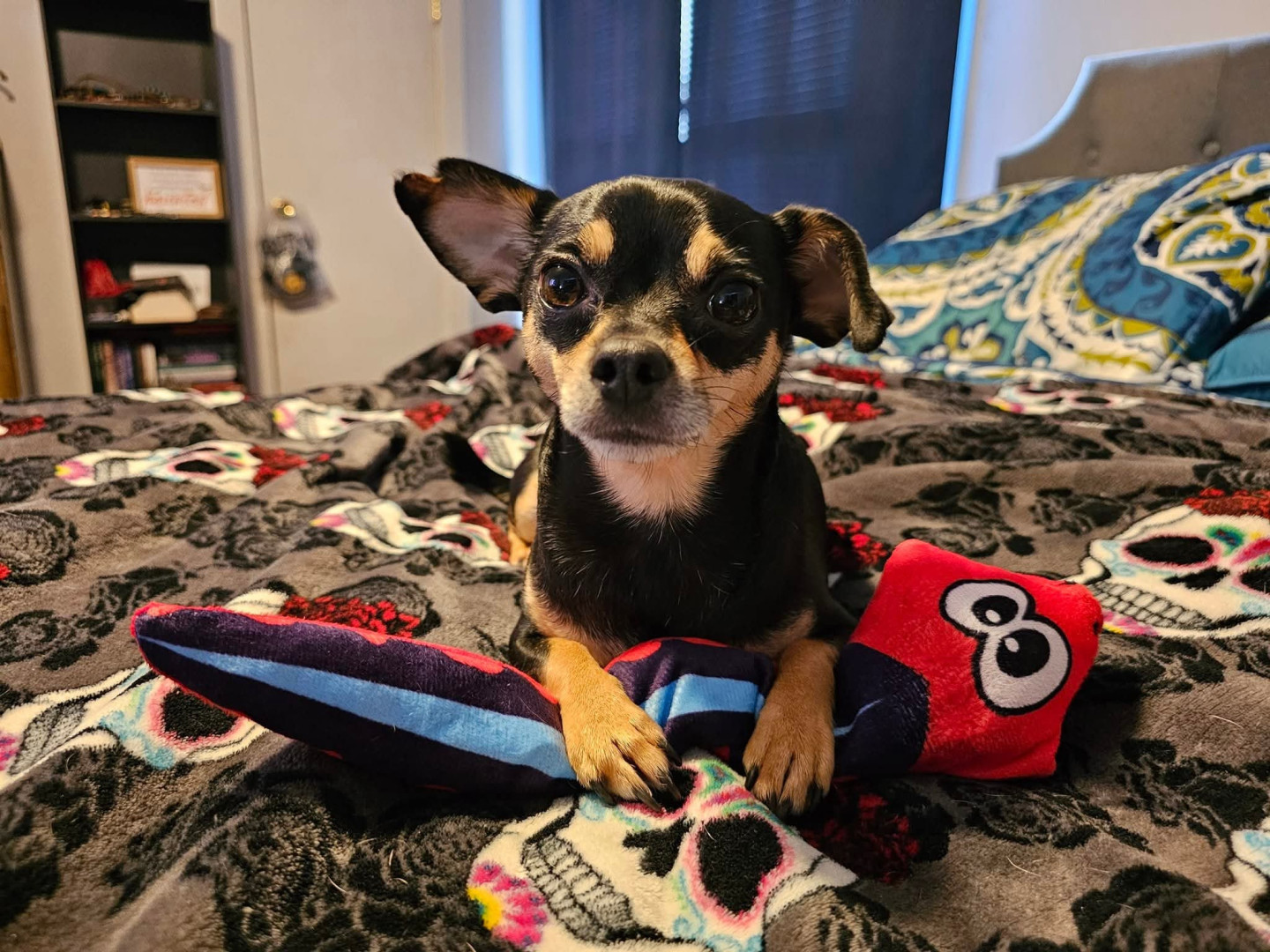 Learn MoreWhiskey’s favorite toy is his crinkle snake, and he never misses a chance to toss it around or show it off. When it comes to treats, Greenies and peanut butter are at the top of his list, and he gets extra excited the moment he hears the bag open. Small in size but big on personality, Whiskey knows exactly how to enjoy the good things in life.