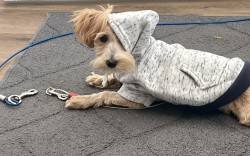 Whiskey will dance and take a bow for a treat. Rye loves to be dressed in a sweater and will stand on back legs and hop in excitement when I show him what I’m dressing him in.