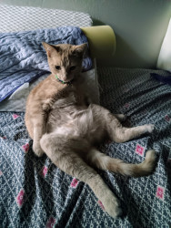 Whiskey is a spicy charismatic little cat that thinks everybody on the planet is here to worship him.