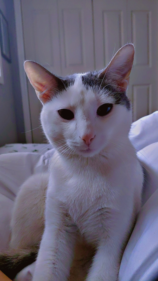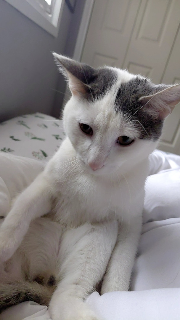 Whisper so soft as a whisper. So playful and loving. Marshmallow vibes. Loves to cuddle and head kiss.