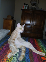 This is my mischievous wittle Lokie. He is the son of a feral i saved from my neighbor. He is my trouble maker an chamer.