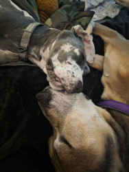 Willow's most unique quality is her ability to be excited about anything and everything in life. She loves her sisters and she loves her treats. Her unique markings also make her a gorgeous pup to watch. She has been a very unique dog for us to own and love!