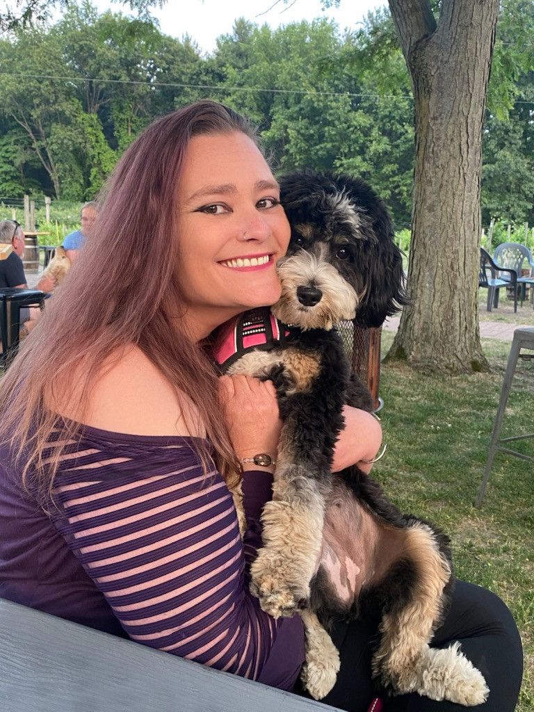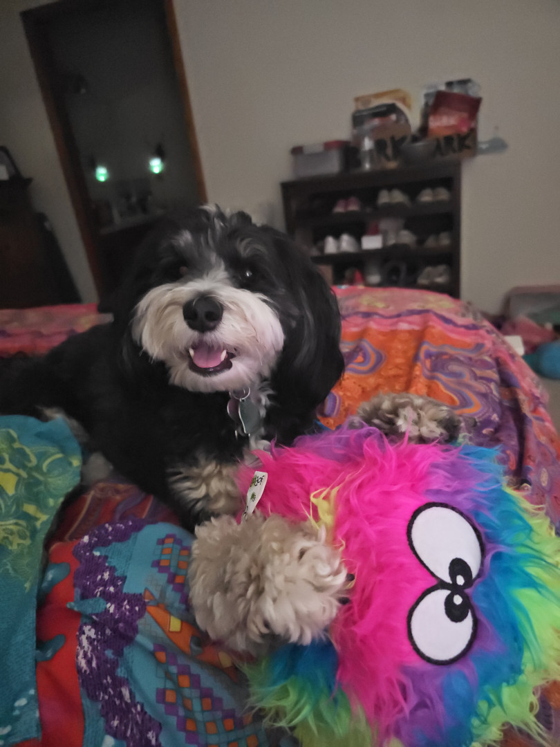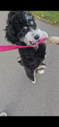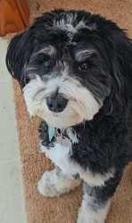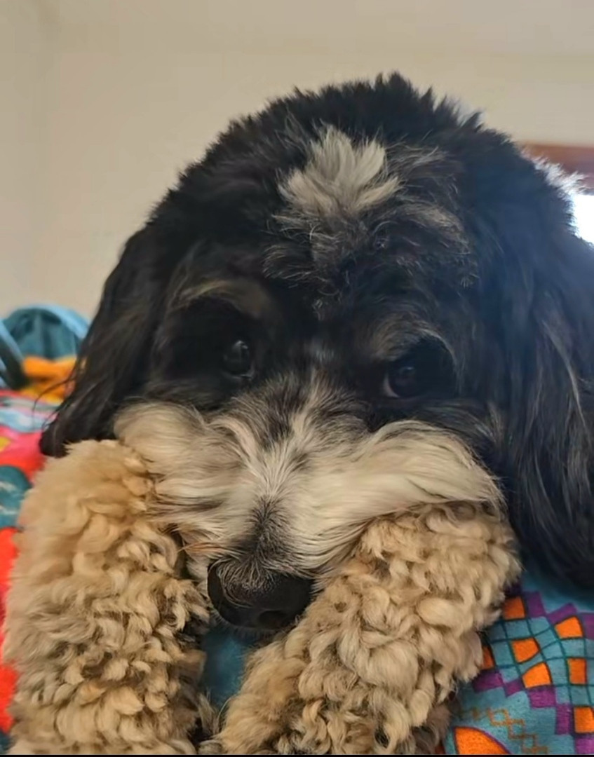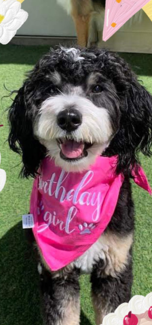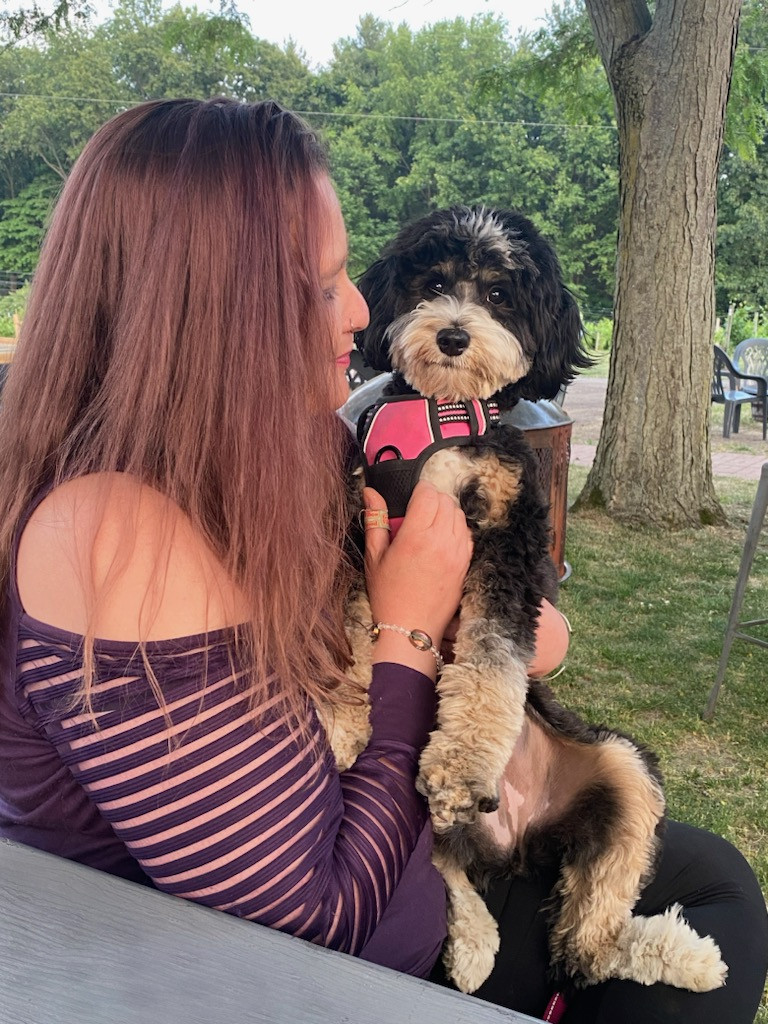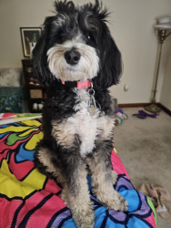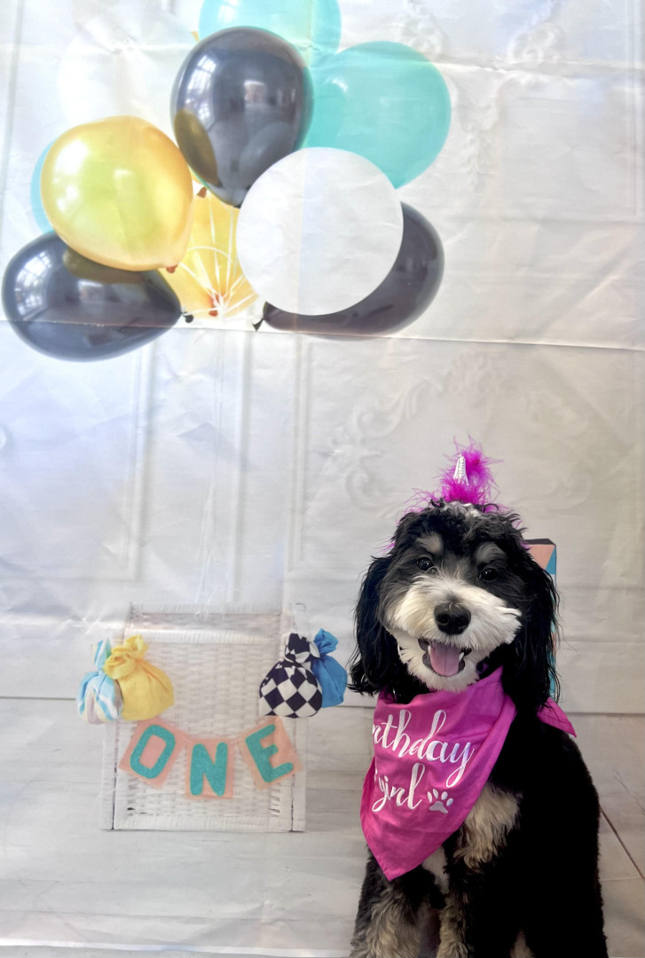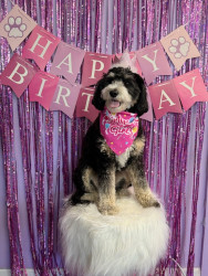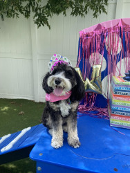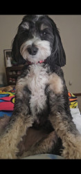 Willow Bean is a 3 year old mini tri colored Bernedoodle. She loves to dance and is a puzzle master. Willow is also a SDIT