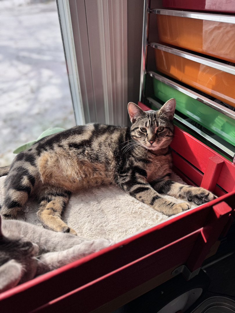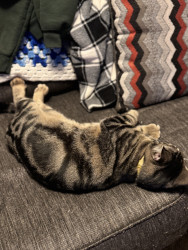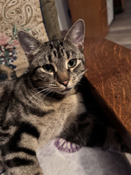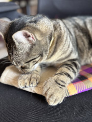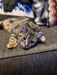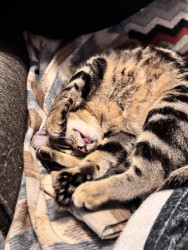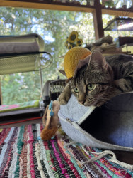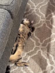 Learn MoreWillows loves things with feathers & hides them under my bed,a fuzzy ball she carries around in her mouth.Loves to torment her 3 siblings hides & pounce them.She does combat maneuvers & walks the under side of the couch.She begs for our food.Loves Chicky Chicky,Venison & Fish. She inspects our food before we eat it hoping its something she likes.