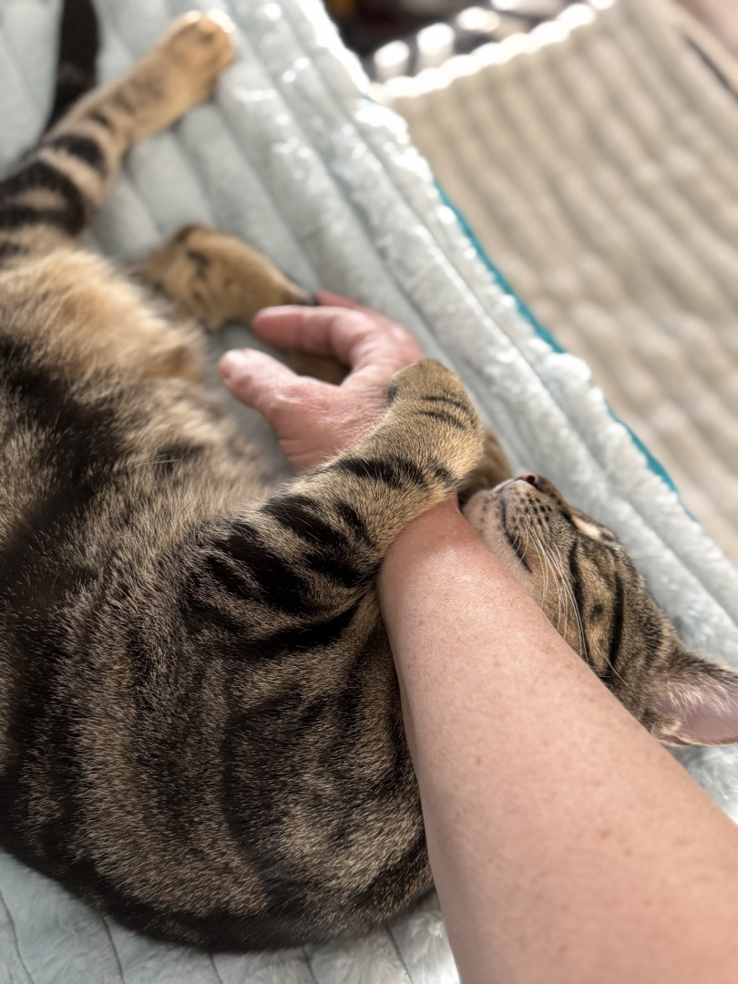 Willow-Bengal Tabby Polydactyl. A personality like no other.Hugs to my hand.Morning wake up meows.Cuddles,Laughter daily. The Best cat ever