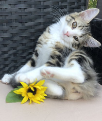 Willow turned one on April 24. She is a very loving, cuddly kittie, who constantly craves your attention.