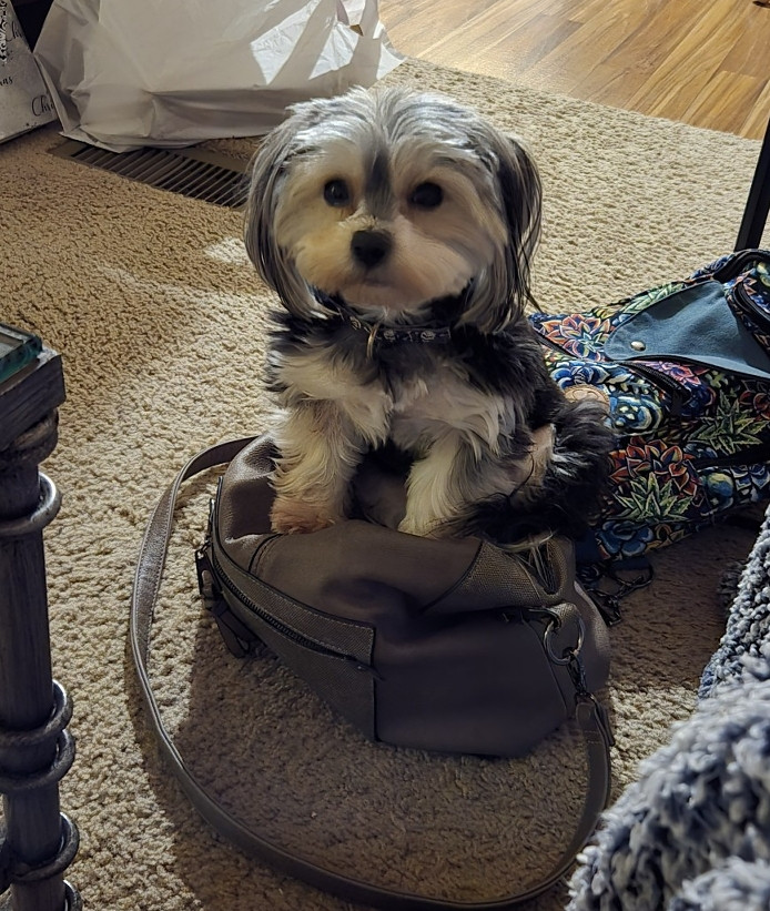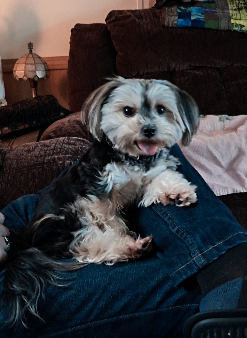 Willow is a 6 year old Morkie. A Maltese/Yorkie mix breed. She loves long naps. Going fishing and thinks she is the Mayor of our street.