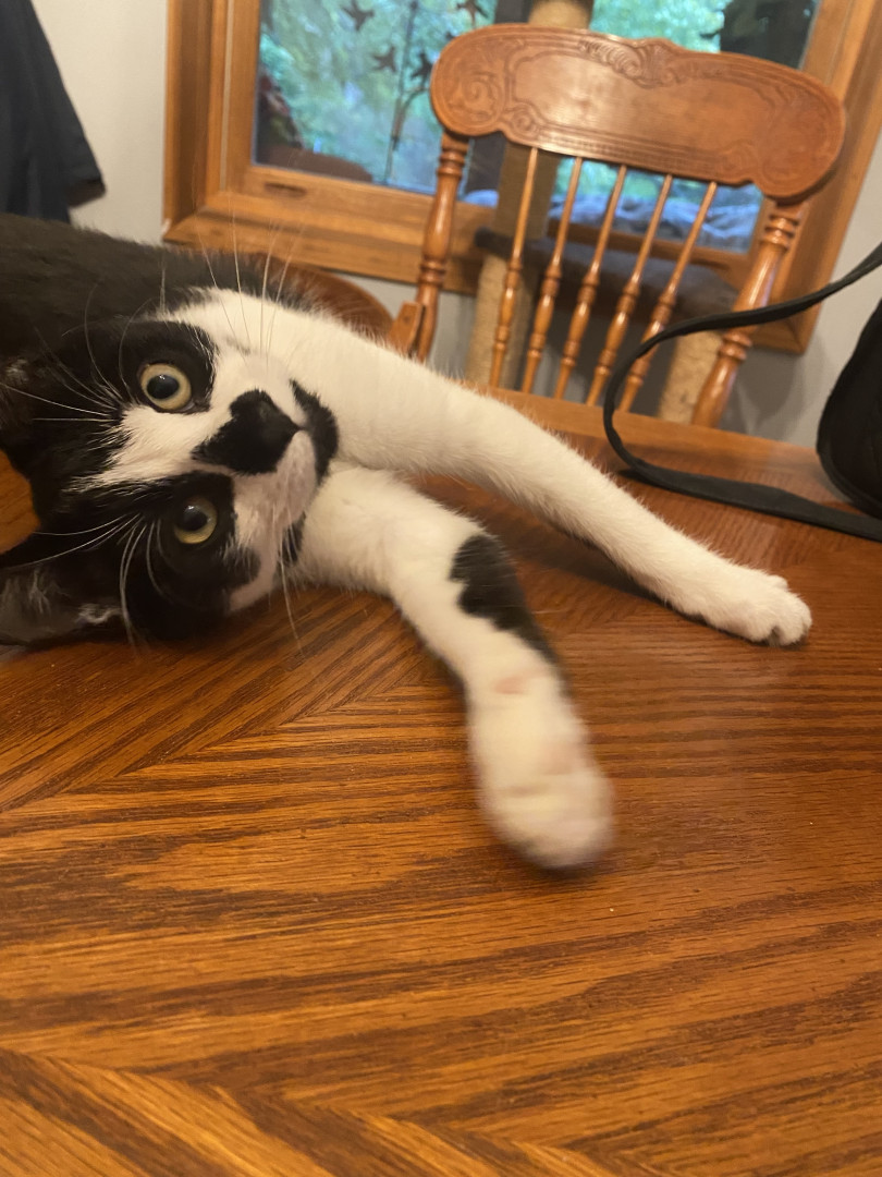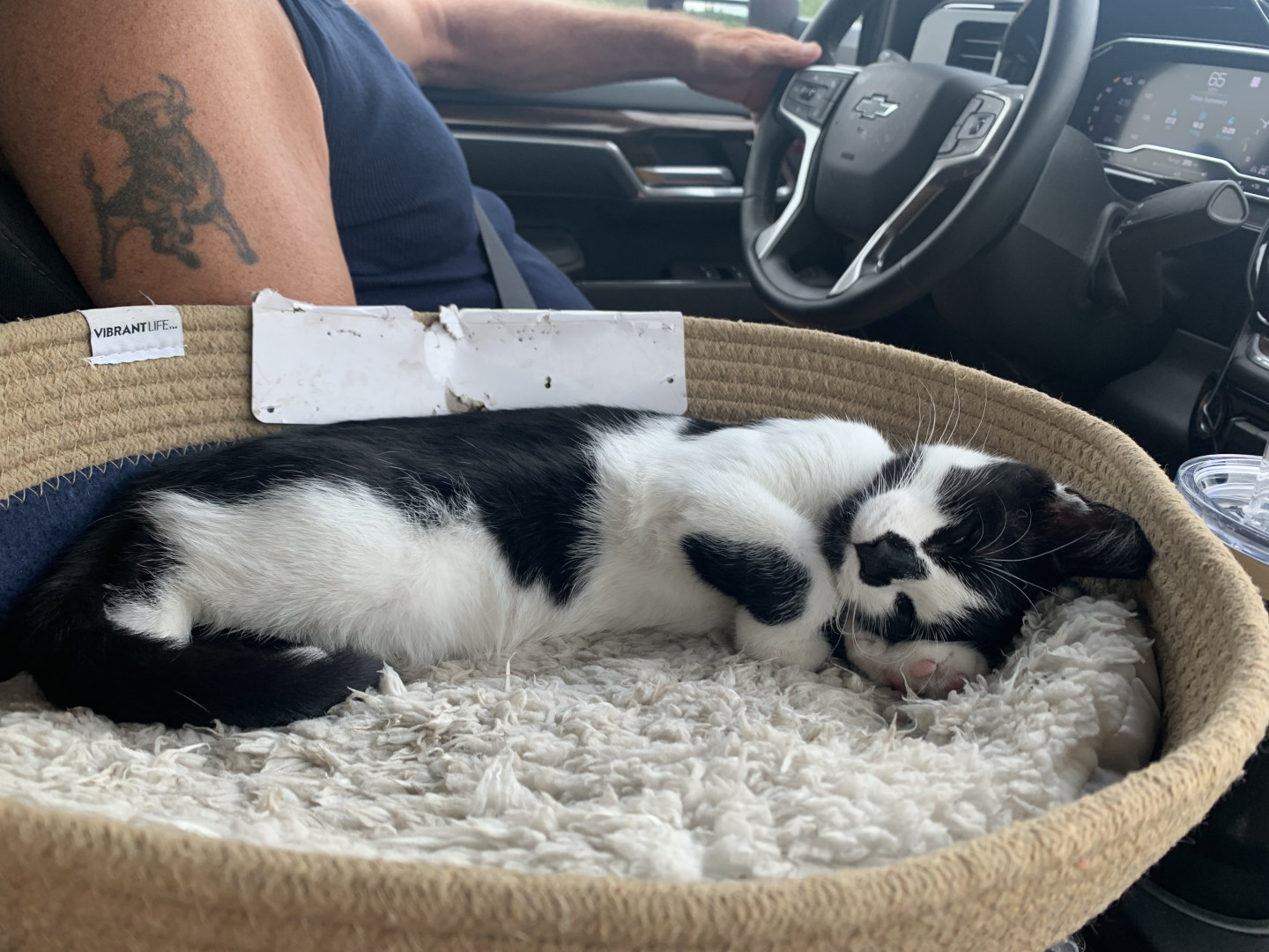 She was a rescue. Found in a ditch with two others . She has so much energy, always on the move. Cute as a button. Going on 9 months old.
