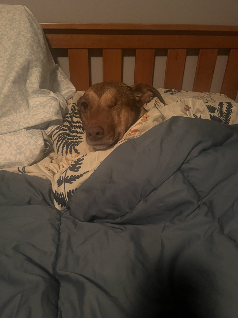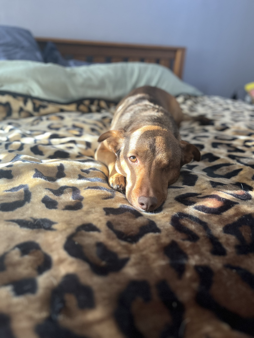 Willow is better known as “God’s mistake.” One-eyed, long body, short legs, and huge head, but even bigger heart.
