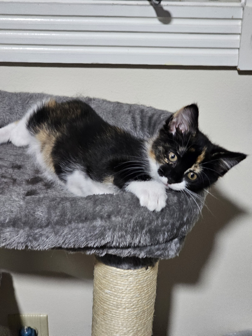 She is so sweet and loving. She is very snugly. And she's so beautiful with all her different colors.