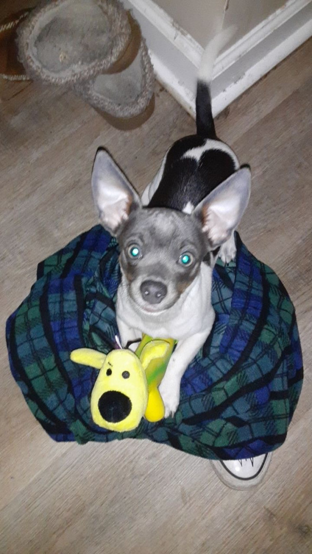 Willie is an adventurous protective service deer head chihuahua. He is very active and loves going outside for walks and playing.