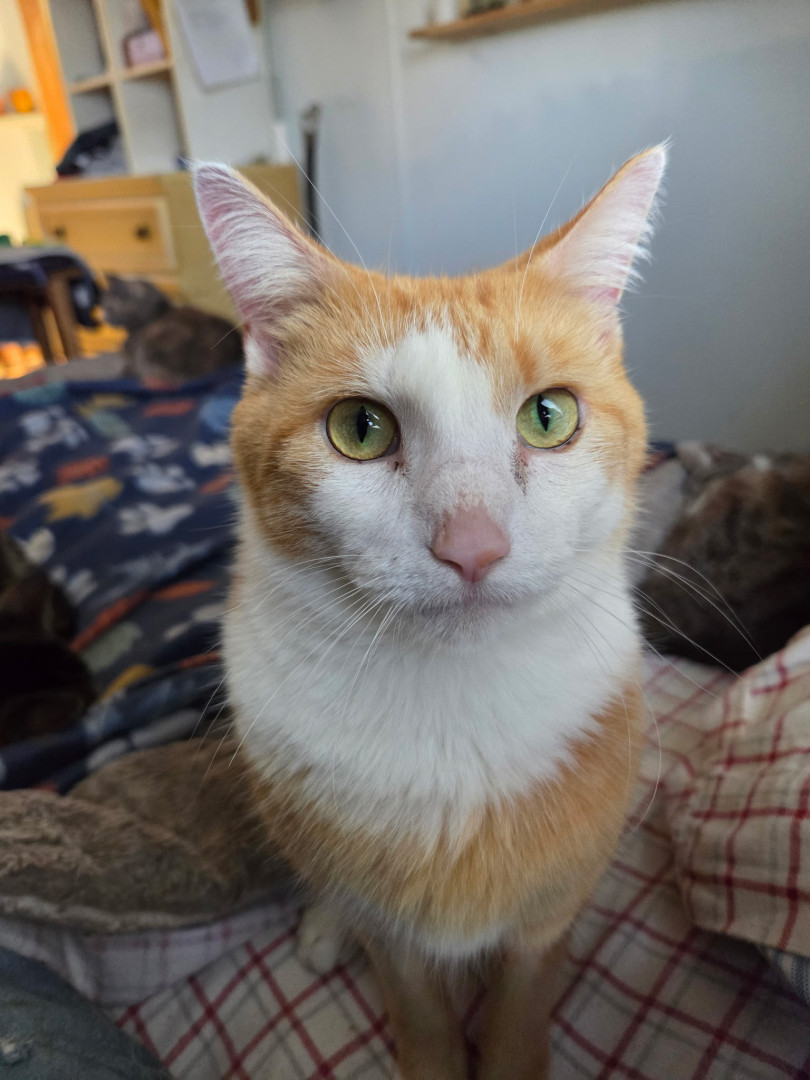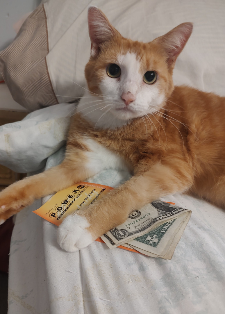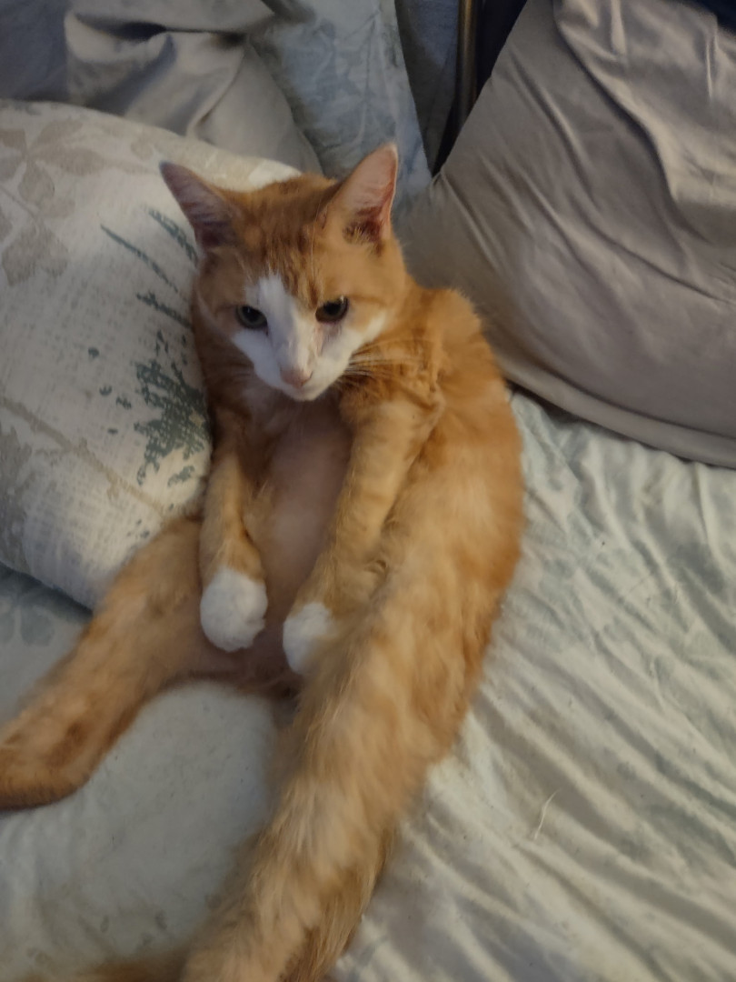 Receive Text UpdatesHe loves scrambled eggs and bonkers purr pops treats. He loves going out in his catio on warm days!