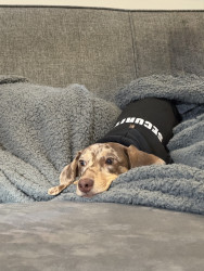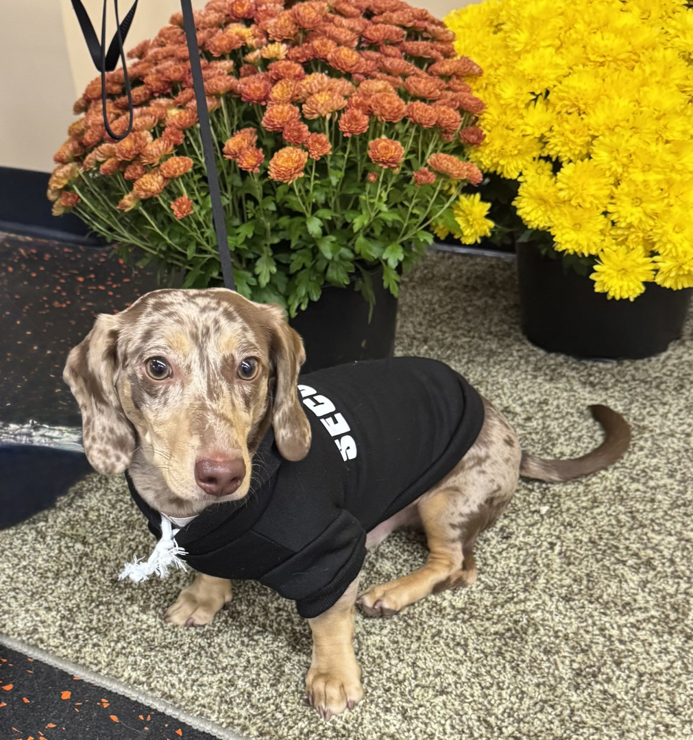 Wilmer is a nine month old miniature dachshund, w/ the attitude of 100 pound Great Dane! He’s quite the character w/ a personality to match