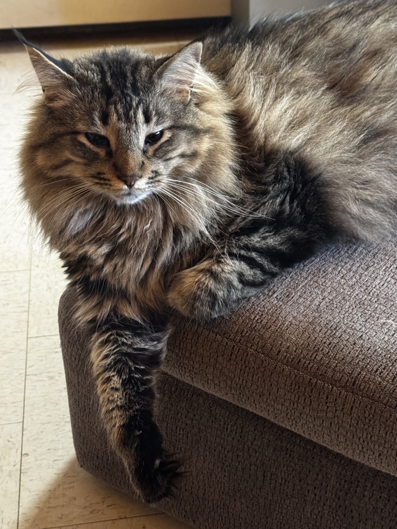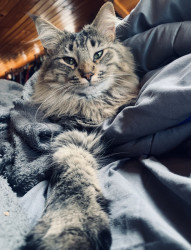 Wilson (We call him Willy) is a Maine Coon mix, and is built for snuggles and scratchies