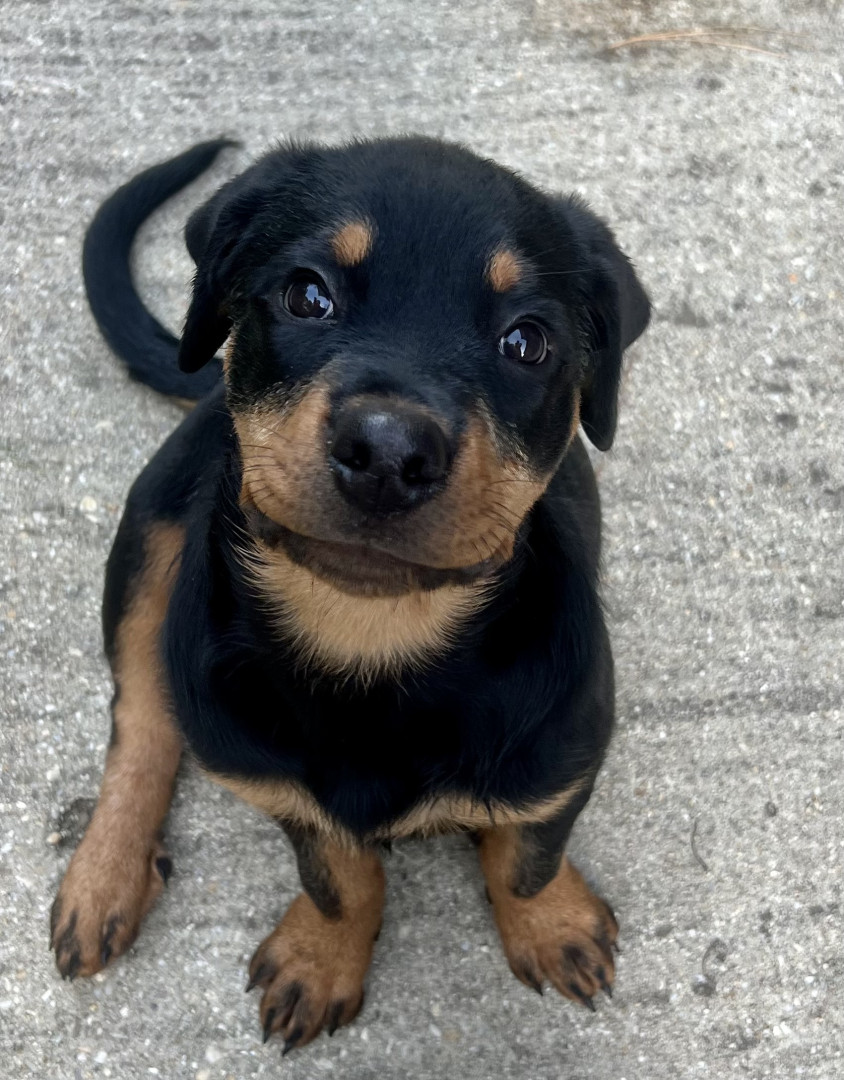 Wimberly came to us as a big surprise from our local range. She is a bundle of join and am extremely smart and loving Rottie.