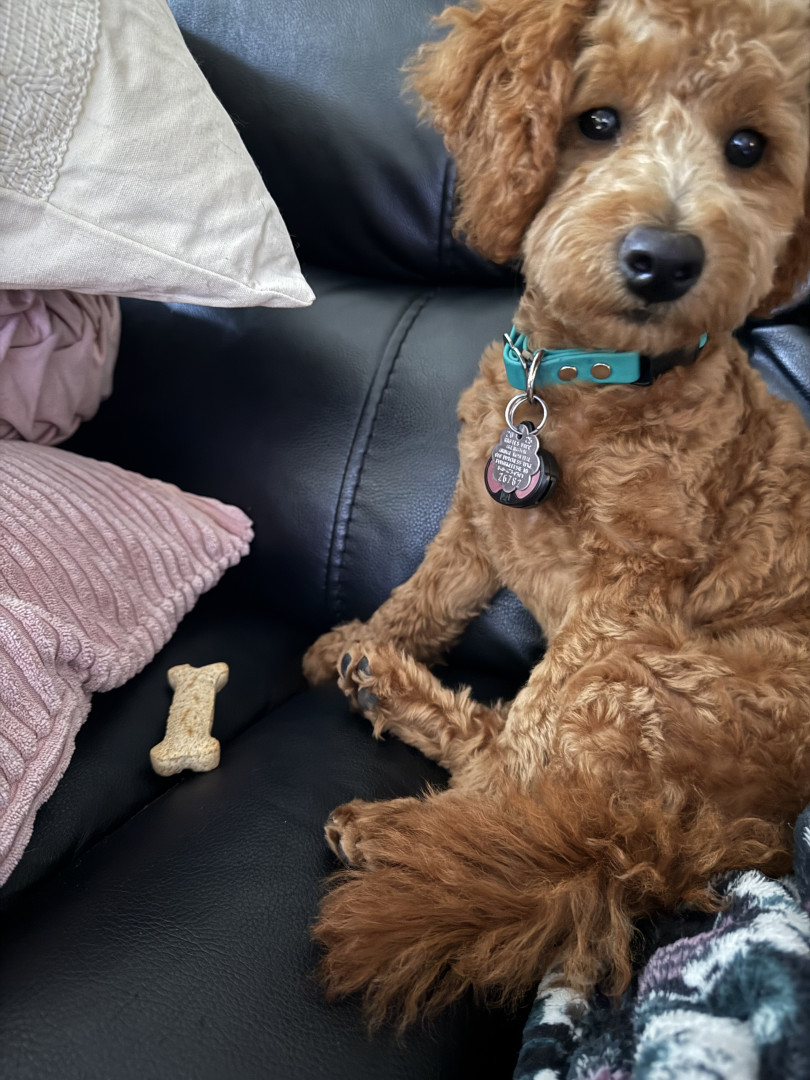 Winnie is the Goldenest of Mini Goldendoodles. She’s smart, sassy, and very classy.