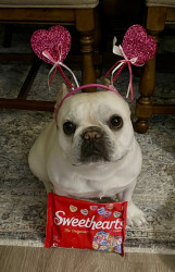 Winnie loves cheese, blueberries, and popcorn! Her fav toy is chewy nylabones!