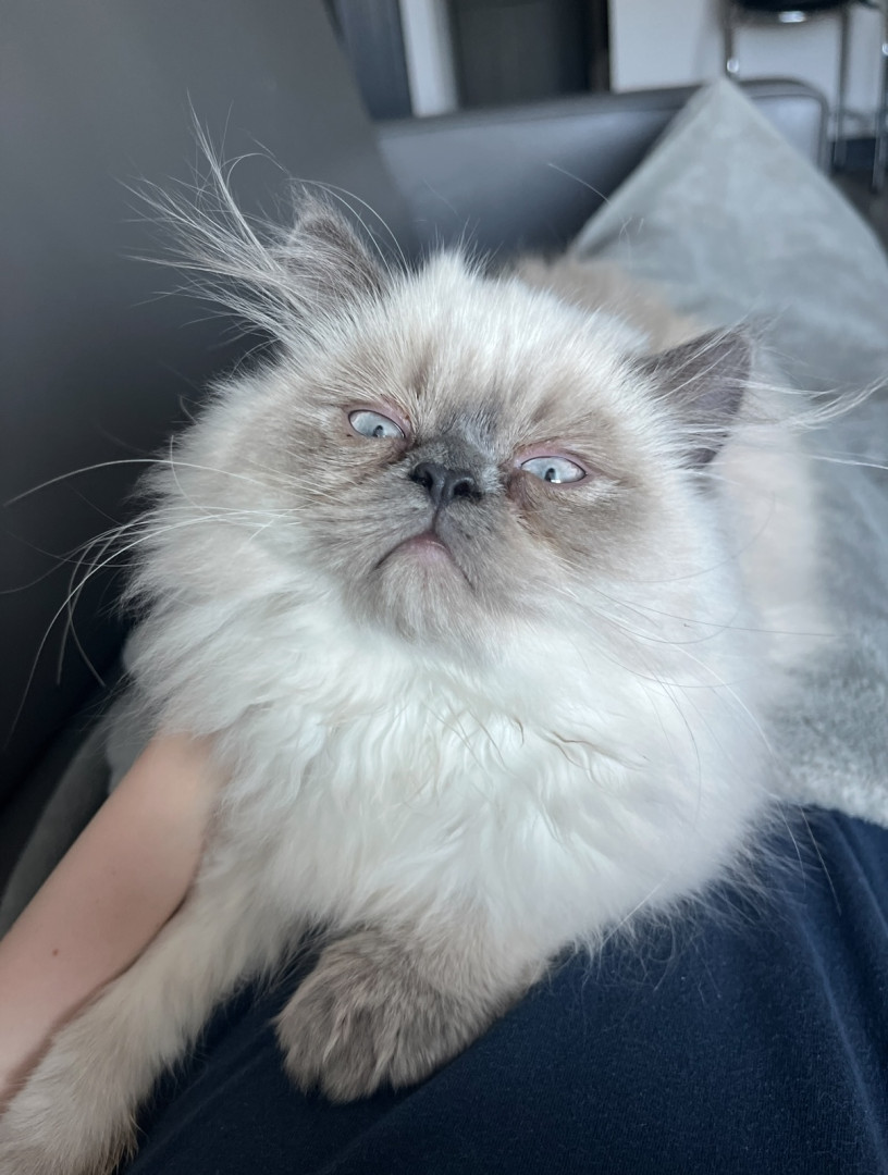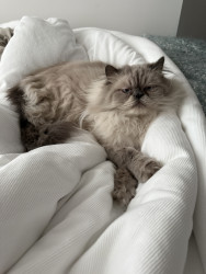 Winnie is a very sweet Minuet Persian who loves to snuggle! He’s 2 years old and spends most of his time in his hammock or my lap!