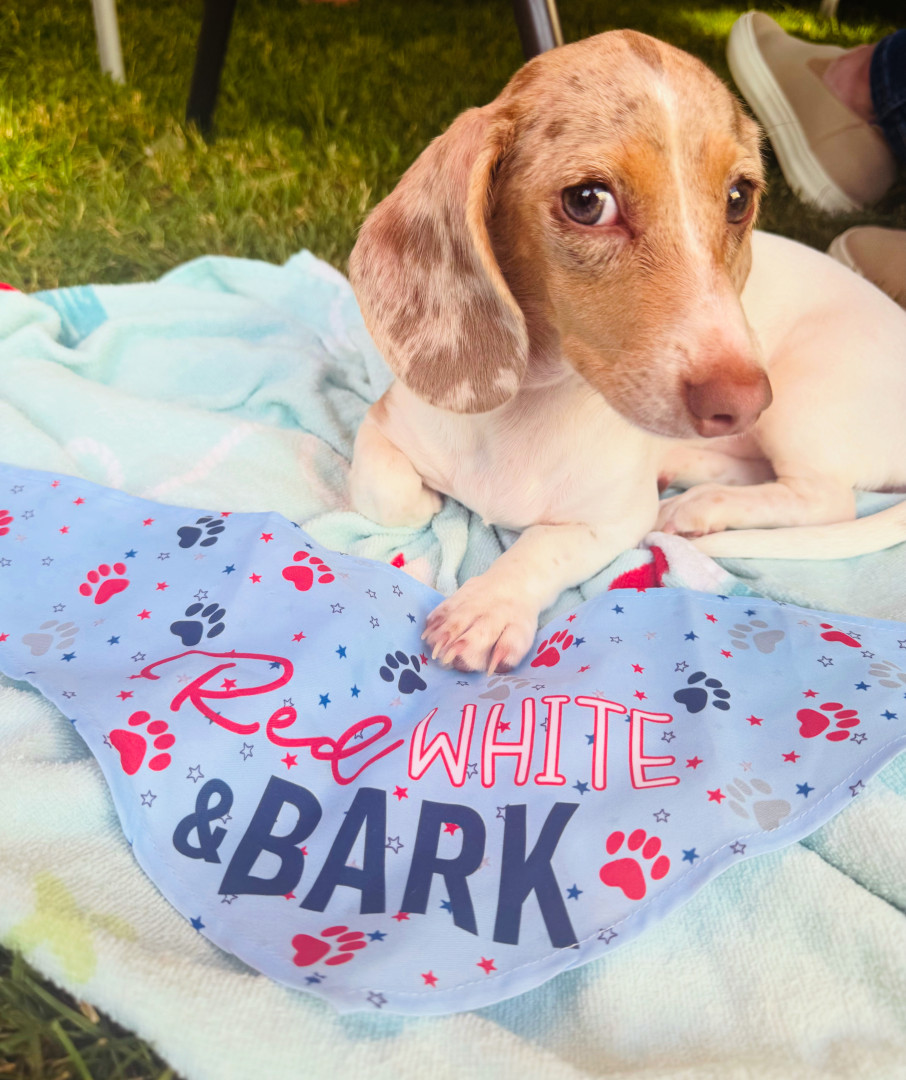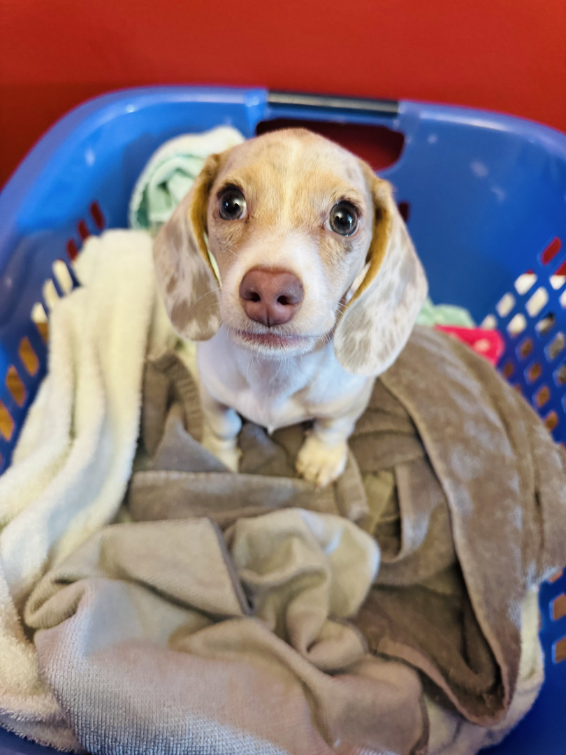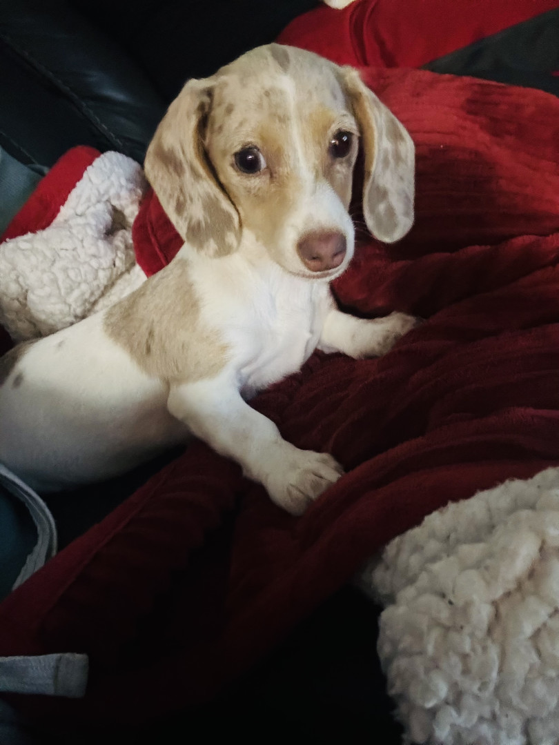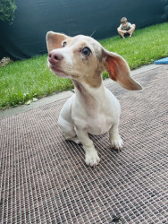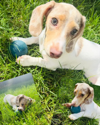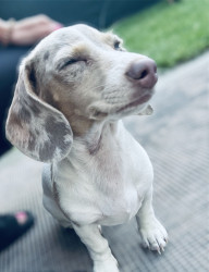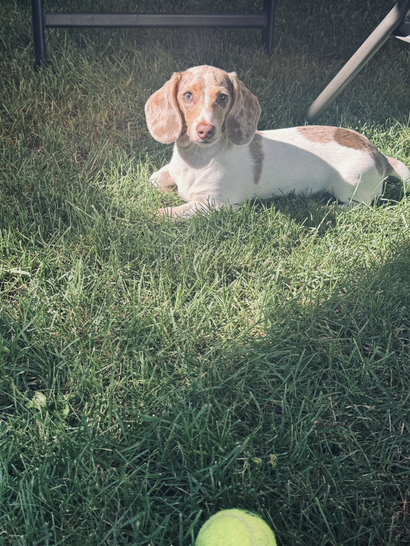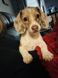 Winnie is a 10 month old mini dachshund. She is a tan pie bald puppy.