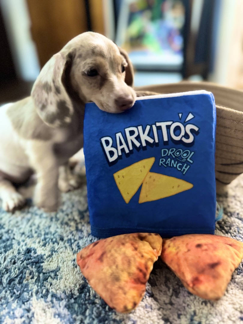 Learn MoreWinnie loves to play with her toy avocado but enjoys stealing socks from the laundry and hiding them in her bed the most.