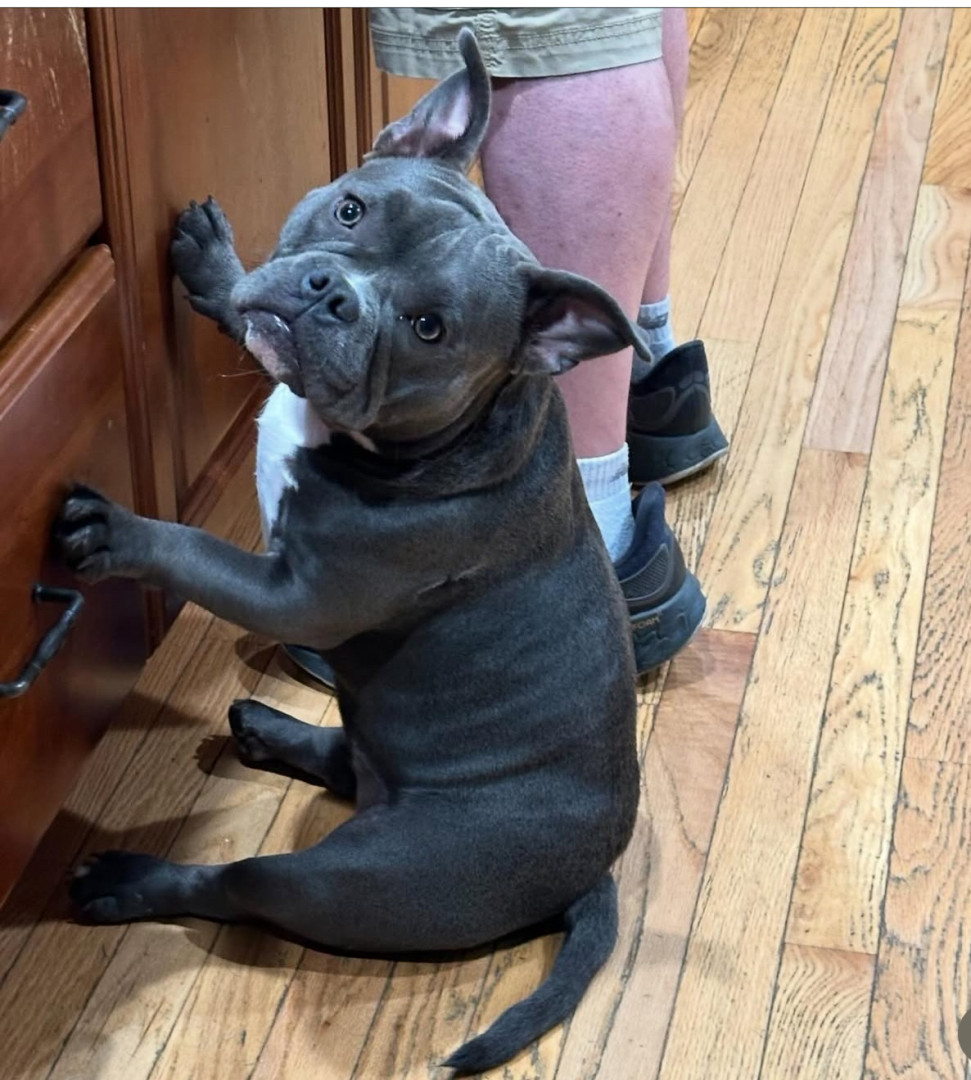 She can sit upright on her bum when she is hoping for food to drop from the counter and has the best wiggle butt in this world! Just say her name and she turns into Shakira!