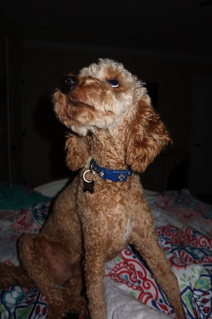 Hi I’m Winston! I love wearing my favorite blue bow tie! I love going on walks with parents and playing with my brother Bentley!