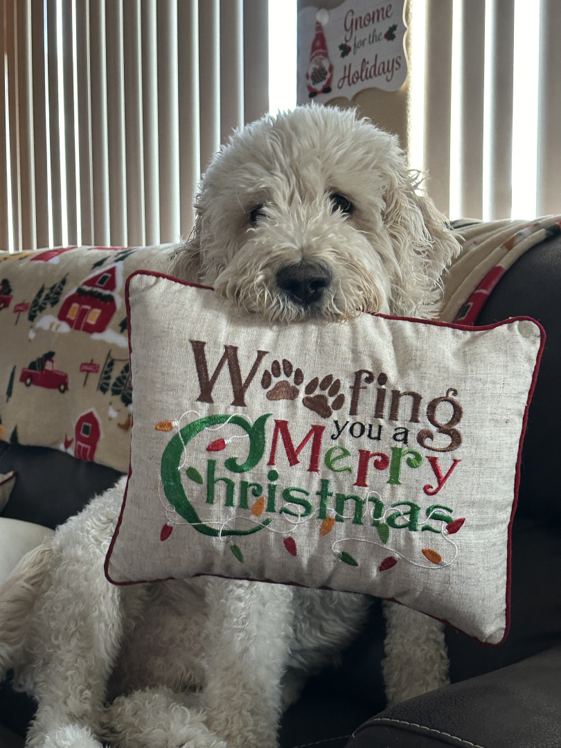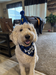 Winston is a lovable 7 year old golden doodle who loves to steal the socks off yourfeet. He is the happiest boy and brings nothing but love