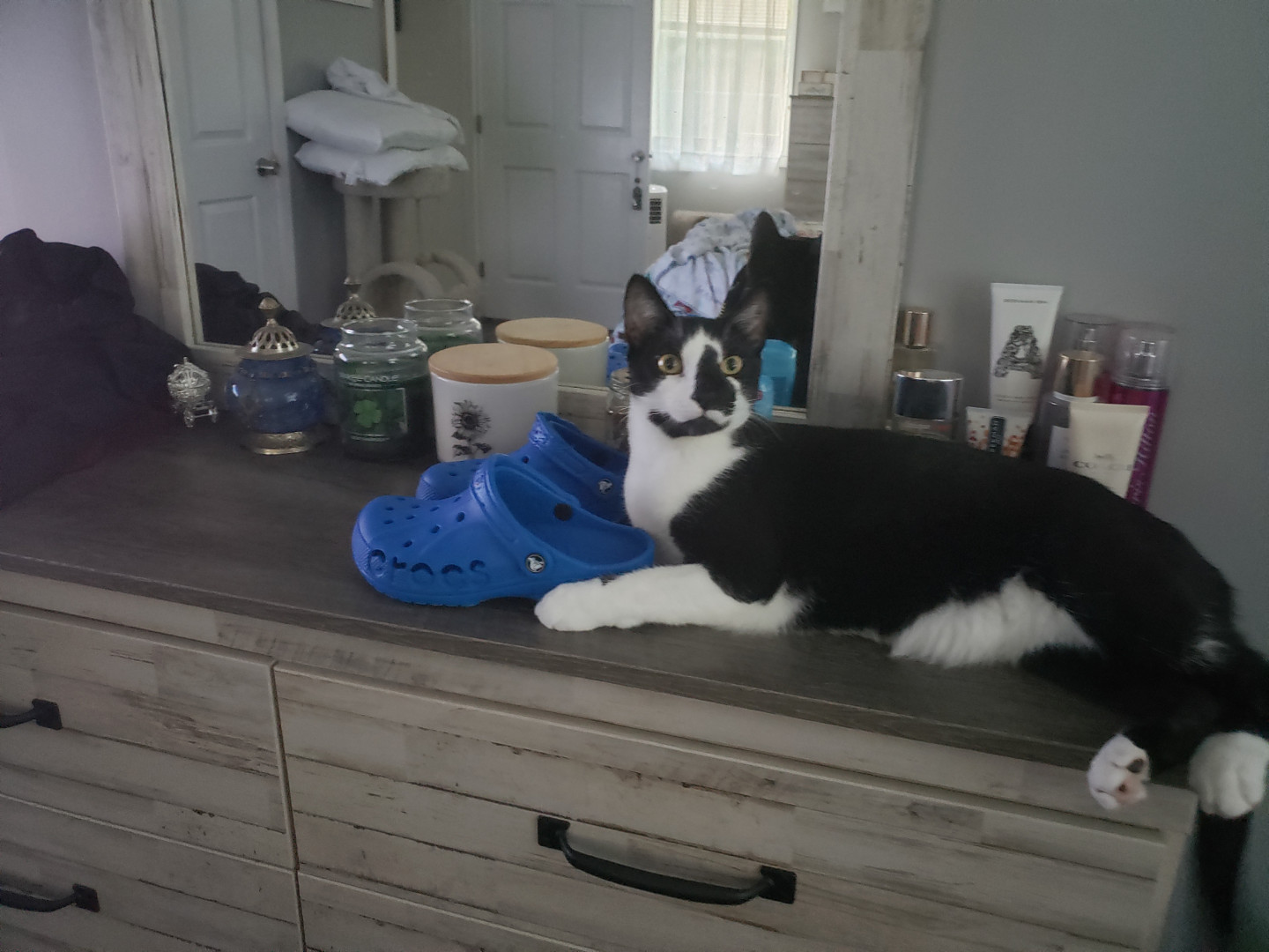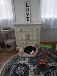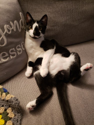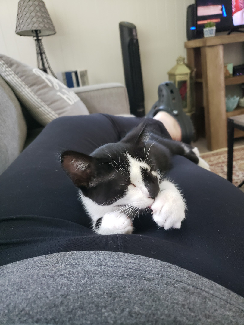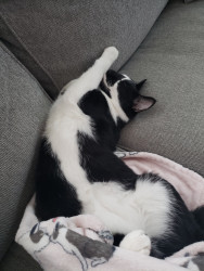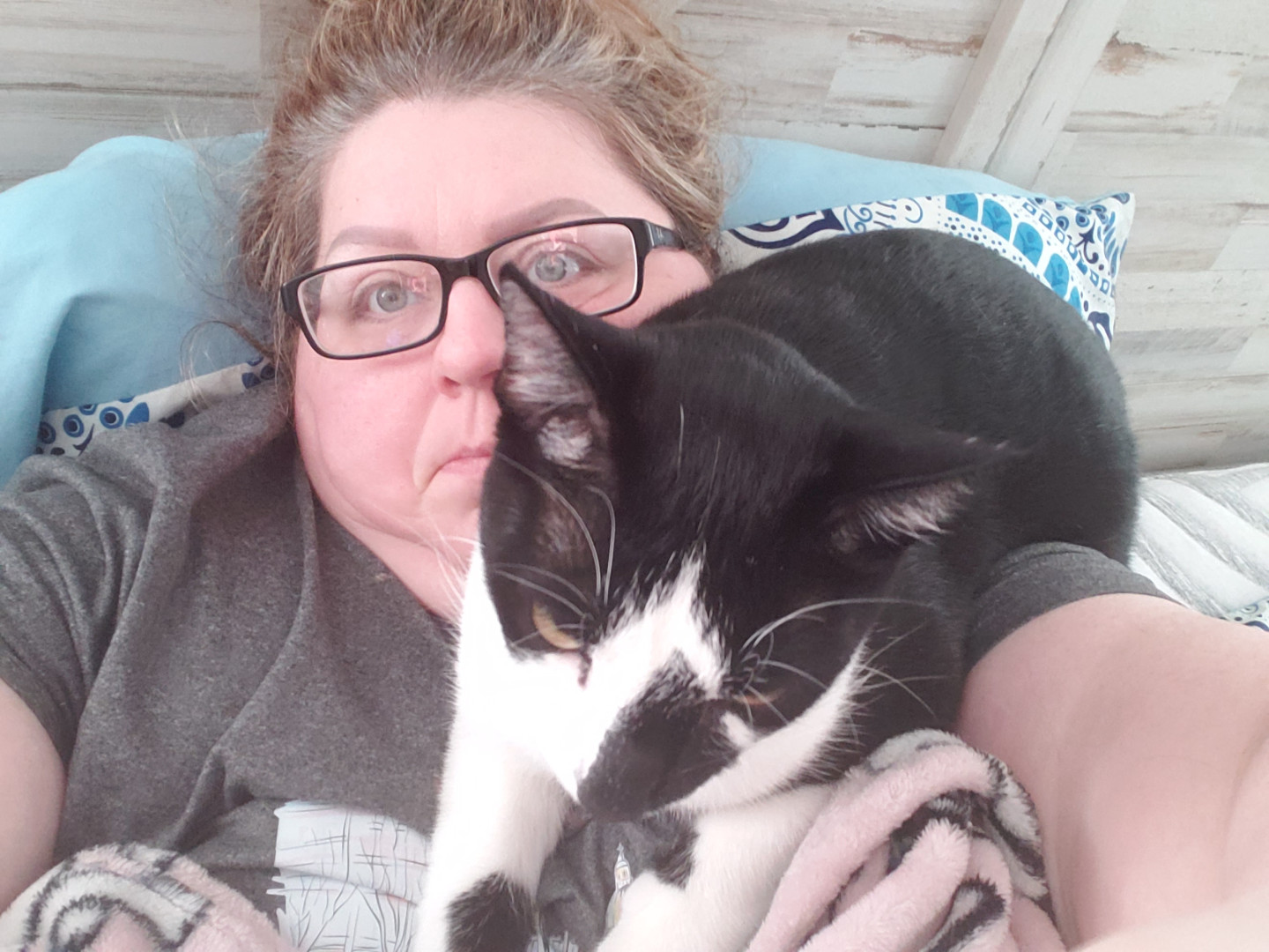Winston is literally a mamas boy. He struggles alittle at jumping up onto high areas. Yes I've never seen a cat that can't jump that well but he does his best. So when he gets into bed with me he pulls himself up by the sheets and just comes to me in his spot and starts kneading and suckles my neck/ shoulder area right by my heart. It's just perfect and melts my heart and I know he loves me but more importantly he knows I love him. I'd be lost without him.