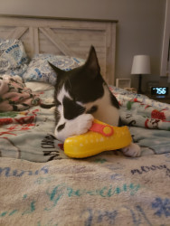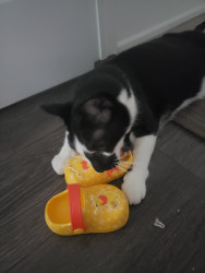 Learn MoreHe loves all toys. Especially my crocs. He loves biting them. So i eventually bought him a pair of baby winnie the pooh crocs. So he has his own. He loves his tempations treats. He is the 1st to get his breakfast and is the last one there.