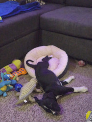 His Squirrel is his favorite toy and his favorite treat is duck