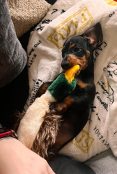 Learn MoreWinston’s favorite toy is his bed that he carries around from room to room wherever he goes. If you’re in a different room, he carries his bed in there with you so he has somewhere to lay.