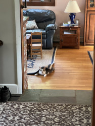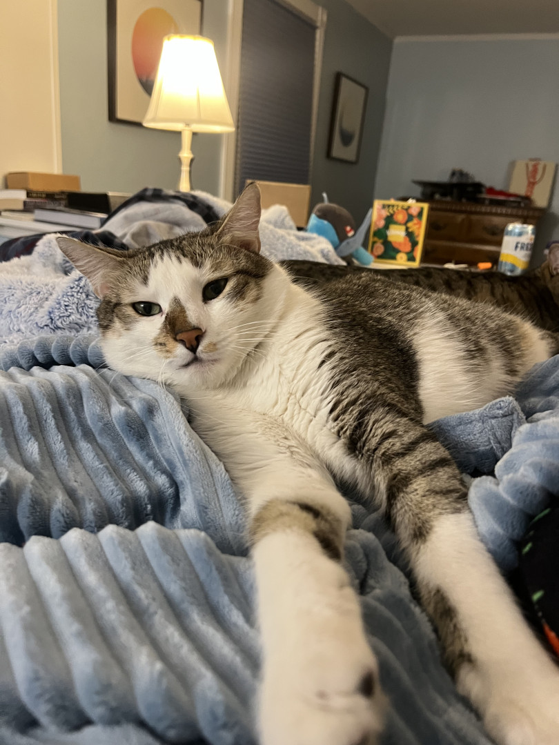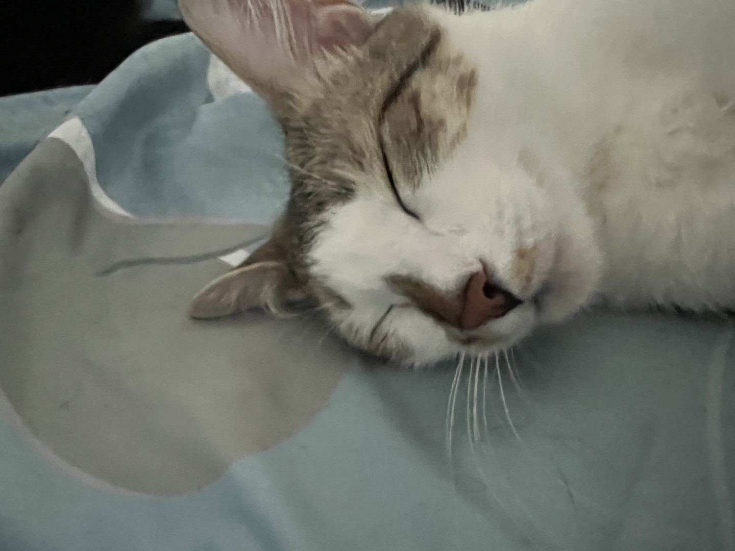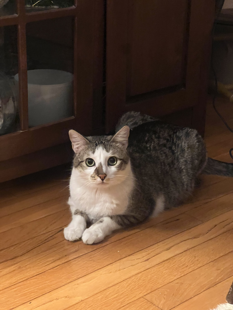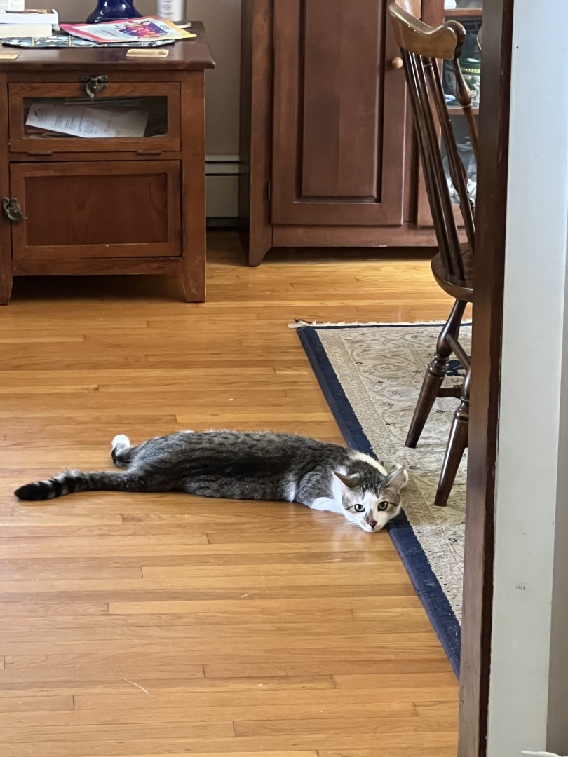 Winston is a silly boy! He loves to sleep in all kinds of spots and positions. He is a year old born on April Fools, and super adventurous!