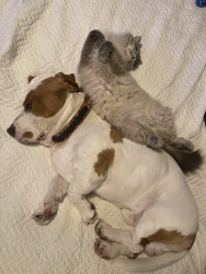 Winston will do anything for a treat! He loves his play dates with his best fur friend. (Bonnie,a German shepherd)& car rides in the country