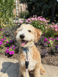 A curly bundle of joy! Winston is a sweet poodle who is happiest chasing pups, snuggling close, and spreading tail wagging cheer.