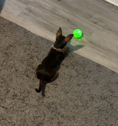 His favorite toys are balls and soft plushies that he can gently munch on. As a sweet, social dog, he loves when children bring small toys to play fetch with him. He’s patient, playful, and always happy to join in, making every game a moment of joy and connection.