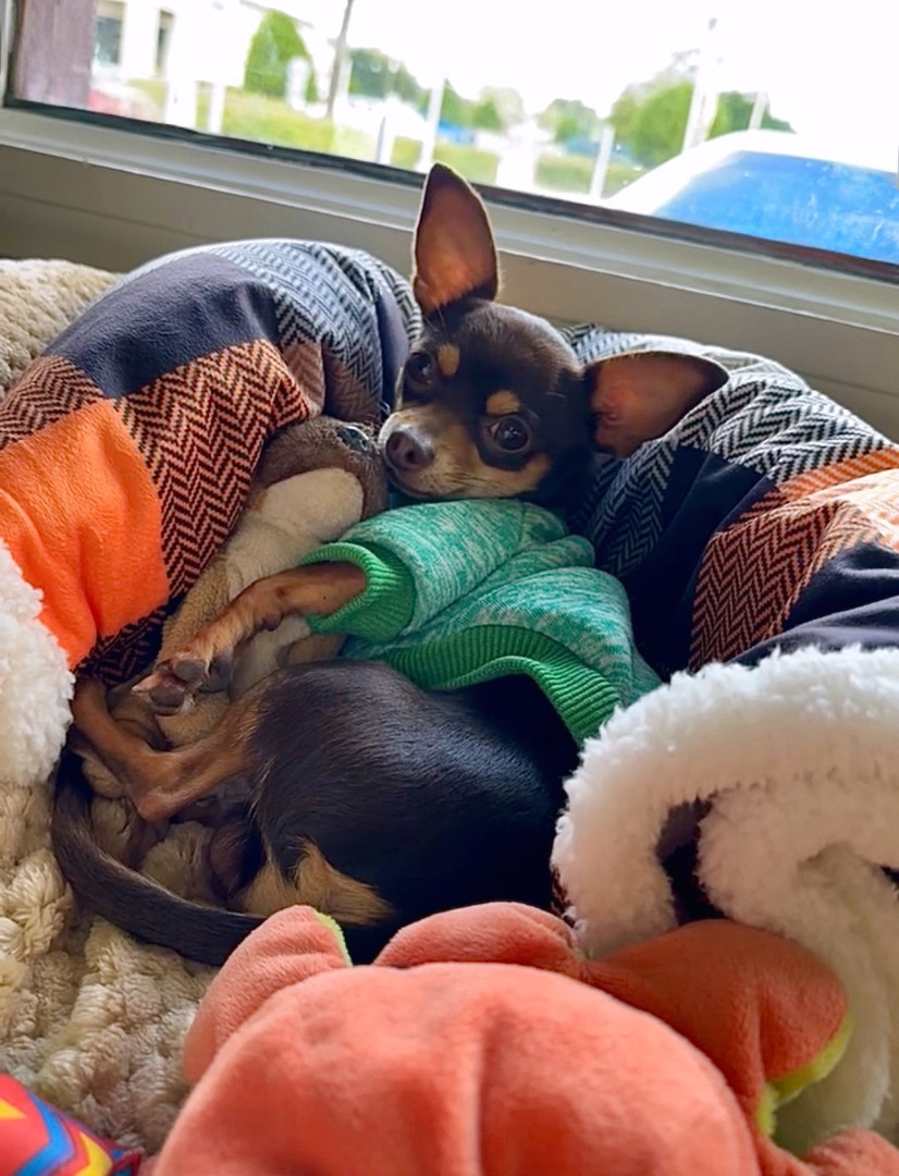 A tiny pup with a big heart, soulful eyes, and a love for cozy snuggles. He brings comfort, joy, and warmth wherever he goes.
