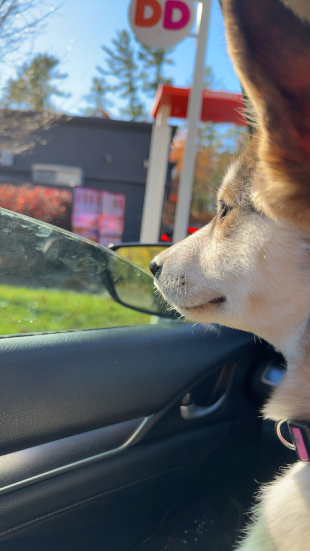 Winter loves the snow, stealing socks, snuggling, playing with any dog that will let her, and pup cups