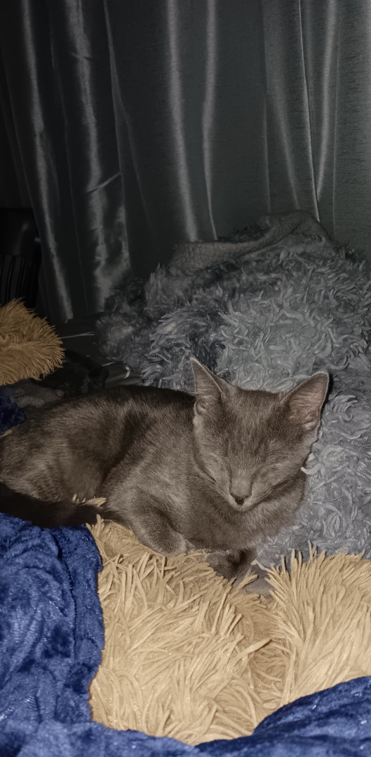 He is a loveable cat that my friend and I rescued, bottled fed, and then I took him in as my own. He came into my life when I was at my lowest and least expected it and he has grown to be a loveable, kind, and knows when I've had a tough day that he lays on me to calm my nerves. He knows when something is not right with me and he's there to calm me.